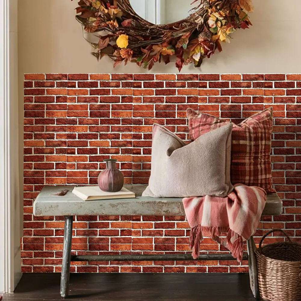 10Pcs/20 Pcs 3D Faux Brick Peel and Stick Wall Tiles – Self-adhesive Brick PVC Wall Panels, Pastoral Style, for Farmhouse Walls