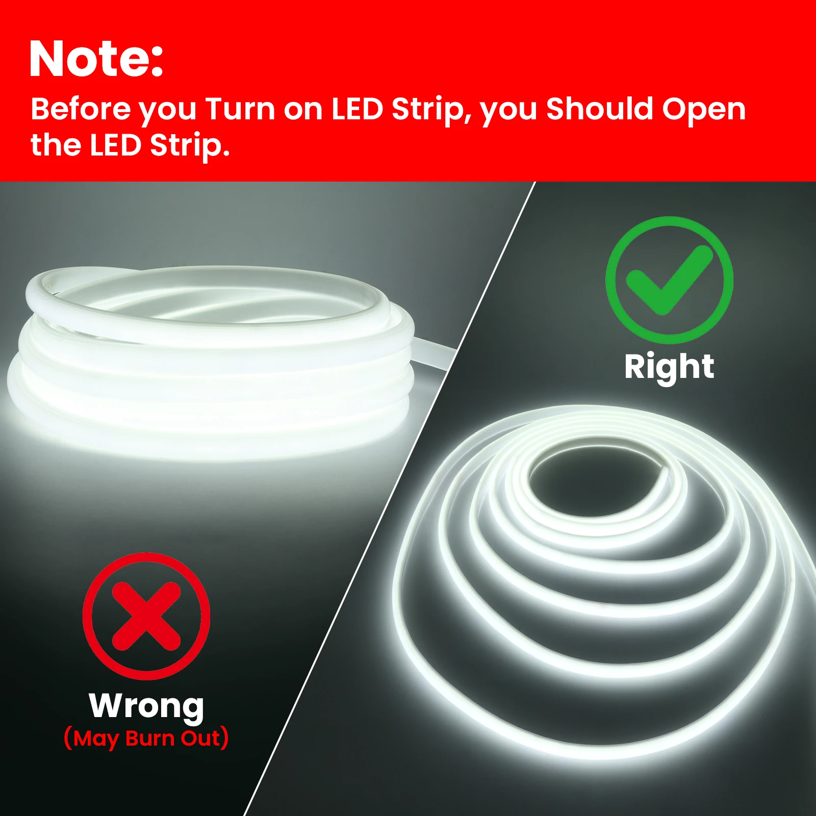 3. Do not light the LED strip when it is rolled up to avoid overheating and burning the light strip.