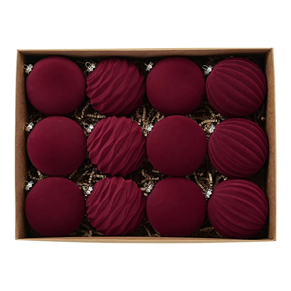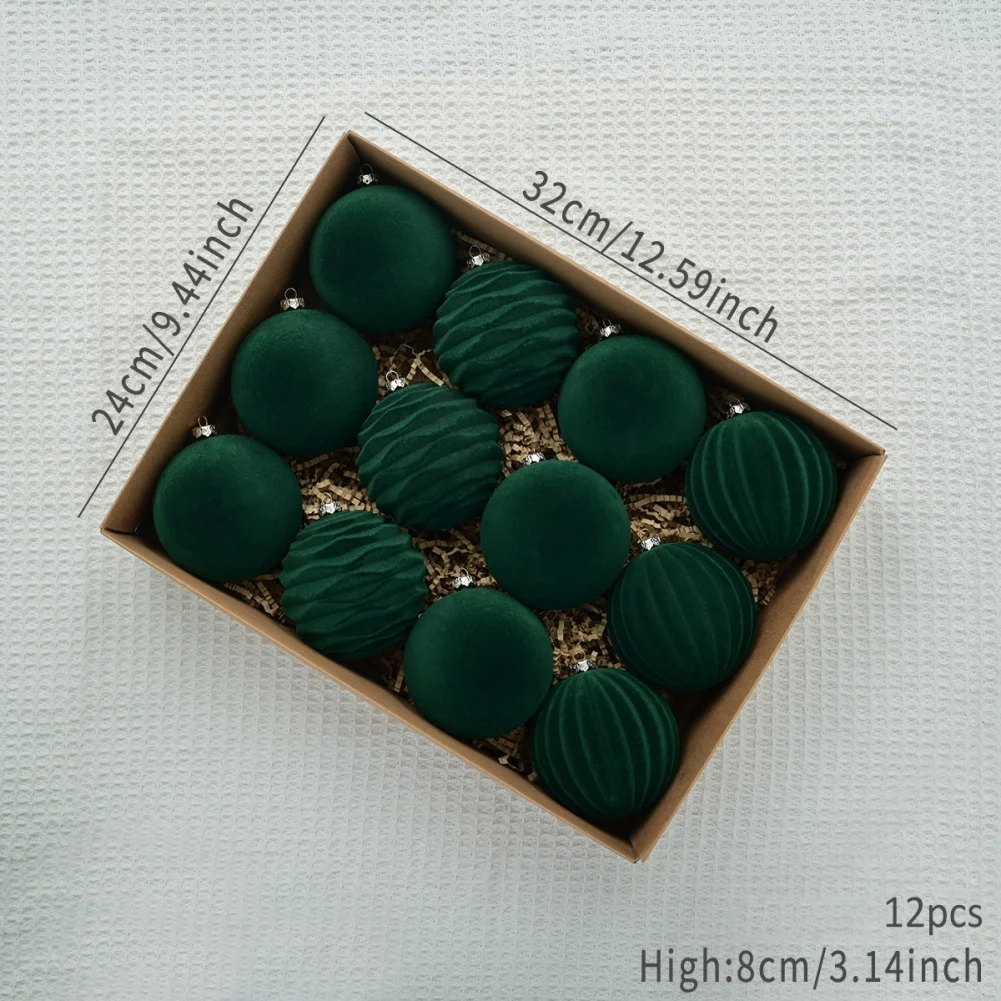 12 Pcs 3.15in High-Quality Velvet Christmas Ball Decoration, Suitable For Home Christmas, Birthday Holiday Party Decoration