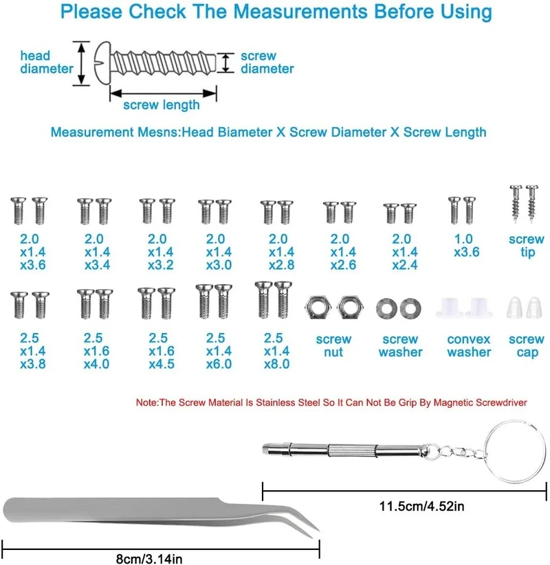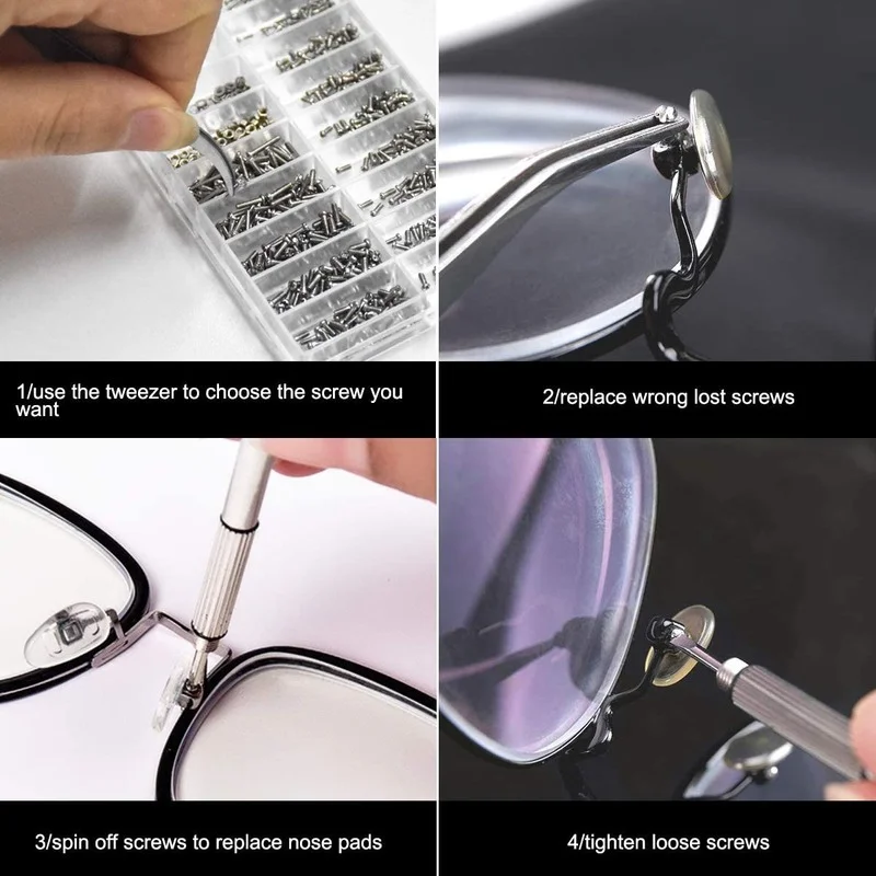 1200pcs Glasses Screws With Screwdriver Tweezers Repair Kit Complete Glasses Screws Mini Screws Set for PC Phone