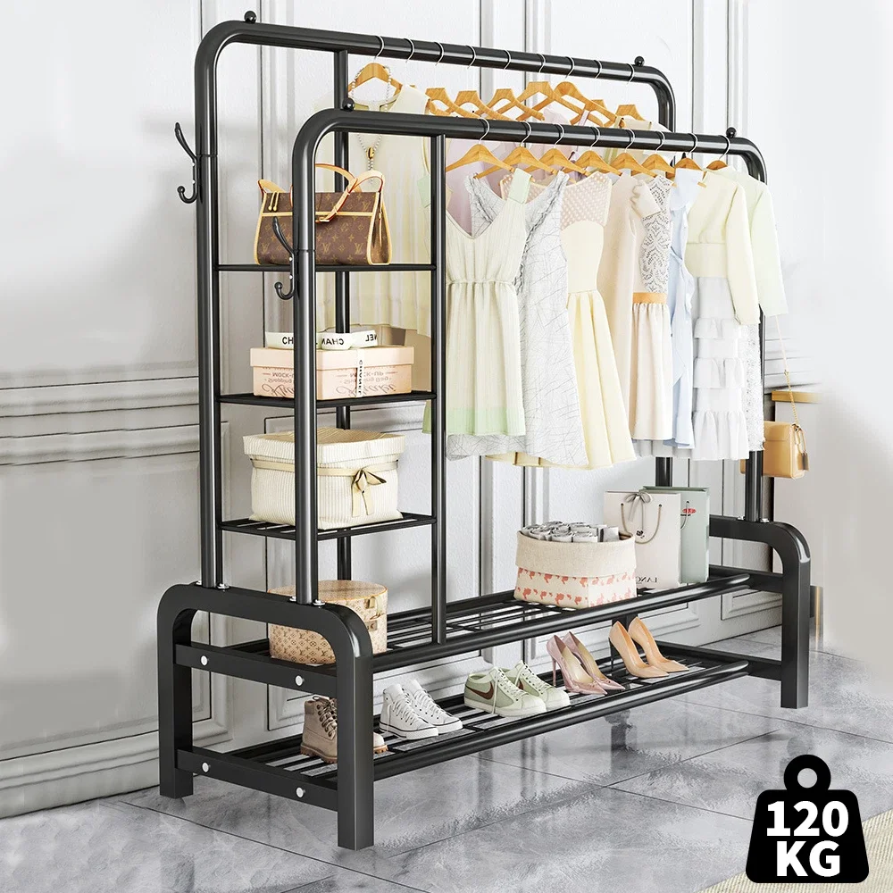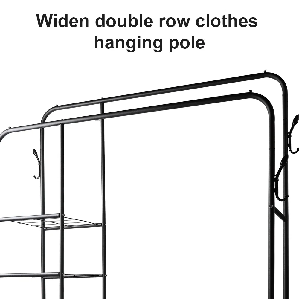 【Sturdy and Durable】The Clothes Rail is a solid clothes rack constructed with high-quality steel tubes for unmatched durability & stability. The clothes rail heavy duty features a stable base & double hanging rods, offering a combined maximum capacity of 120kg