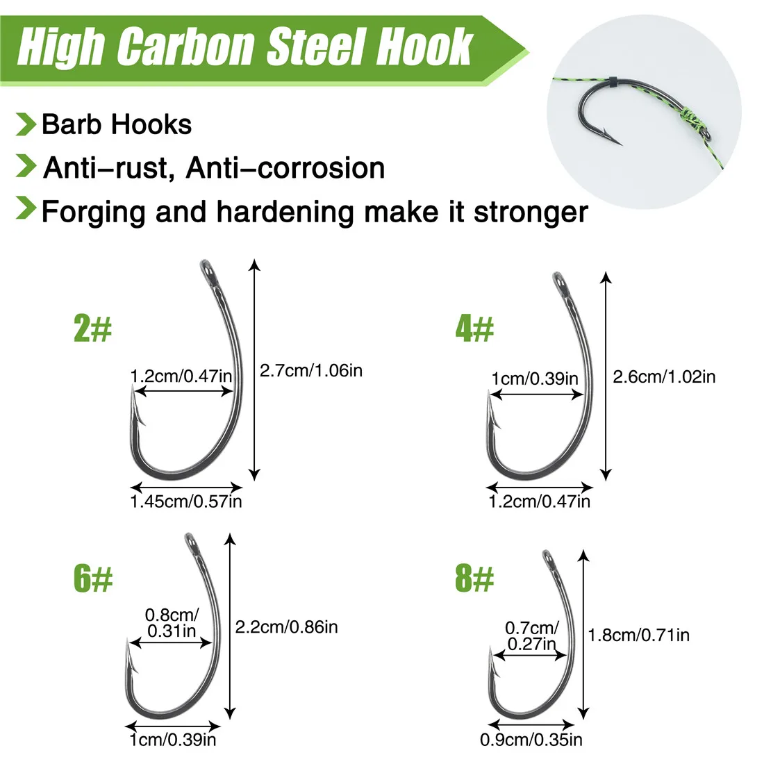 - Hook Size: 2#, 4#, 6#, 8#