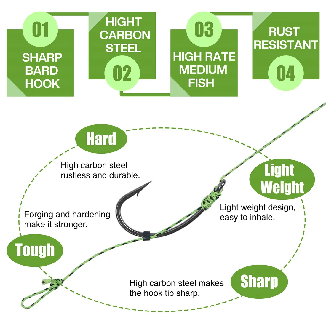 Hooks Material: High carbon steel carp hooks