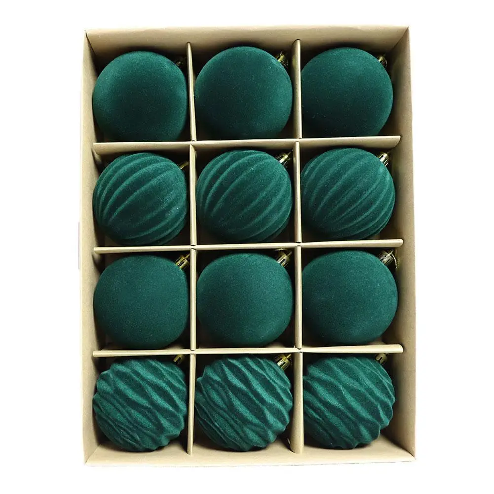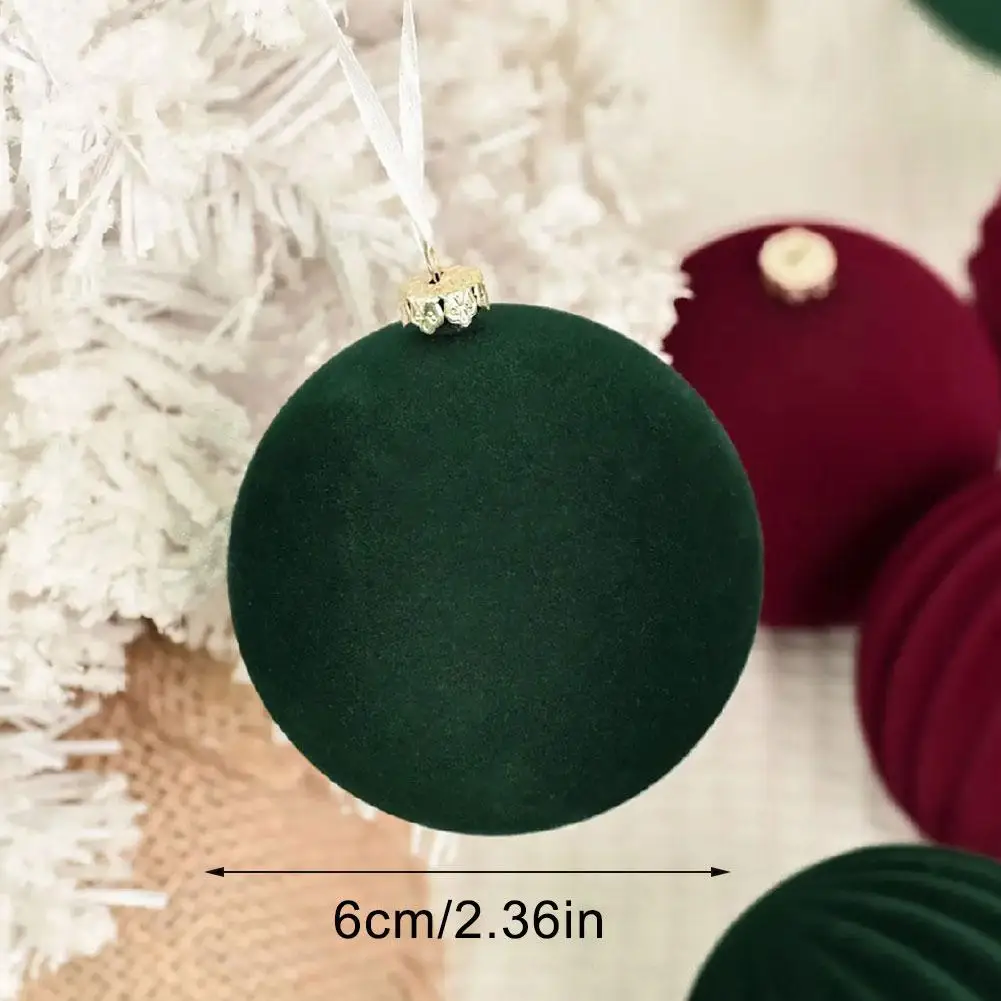 12Pcs Christmas Ball Ornaments Solid Flocked Velvet Balls For Xmas Tree Decorations Home Xmas Party Navidad Wine Red