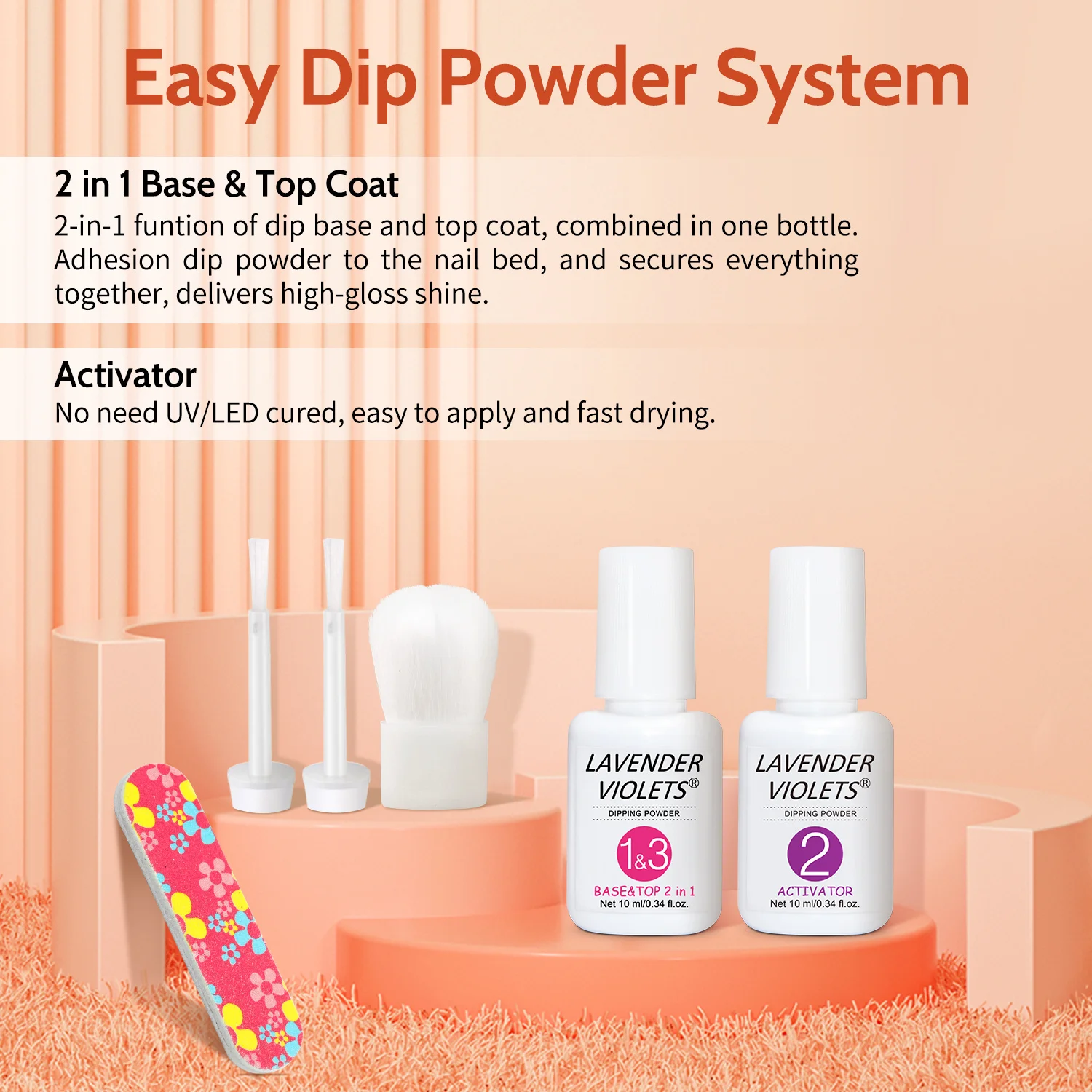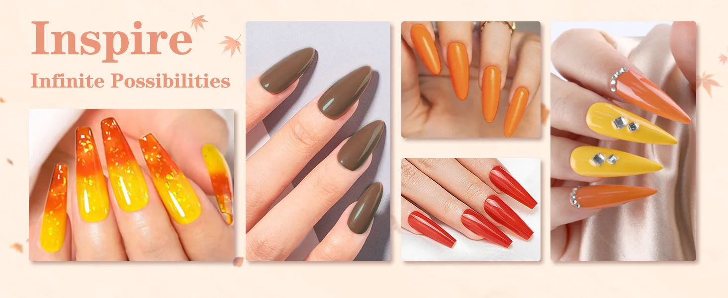 1 review for 12pcs Dip Powder Nail Kit, 6 Orange Red Yellow Colors Dipping Powder & Essential Base Top Coat Activator for Nail Manicure