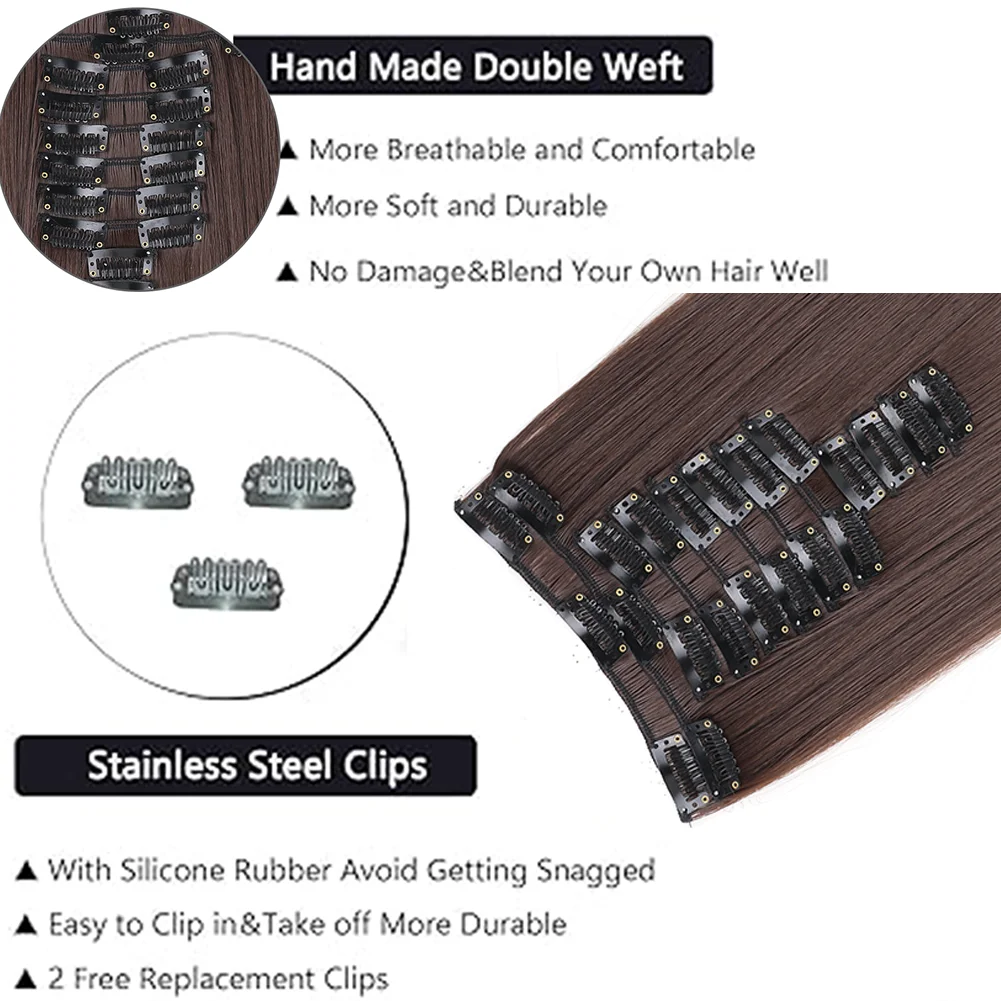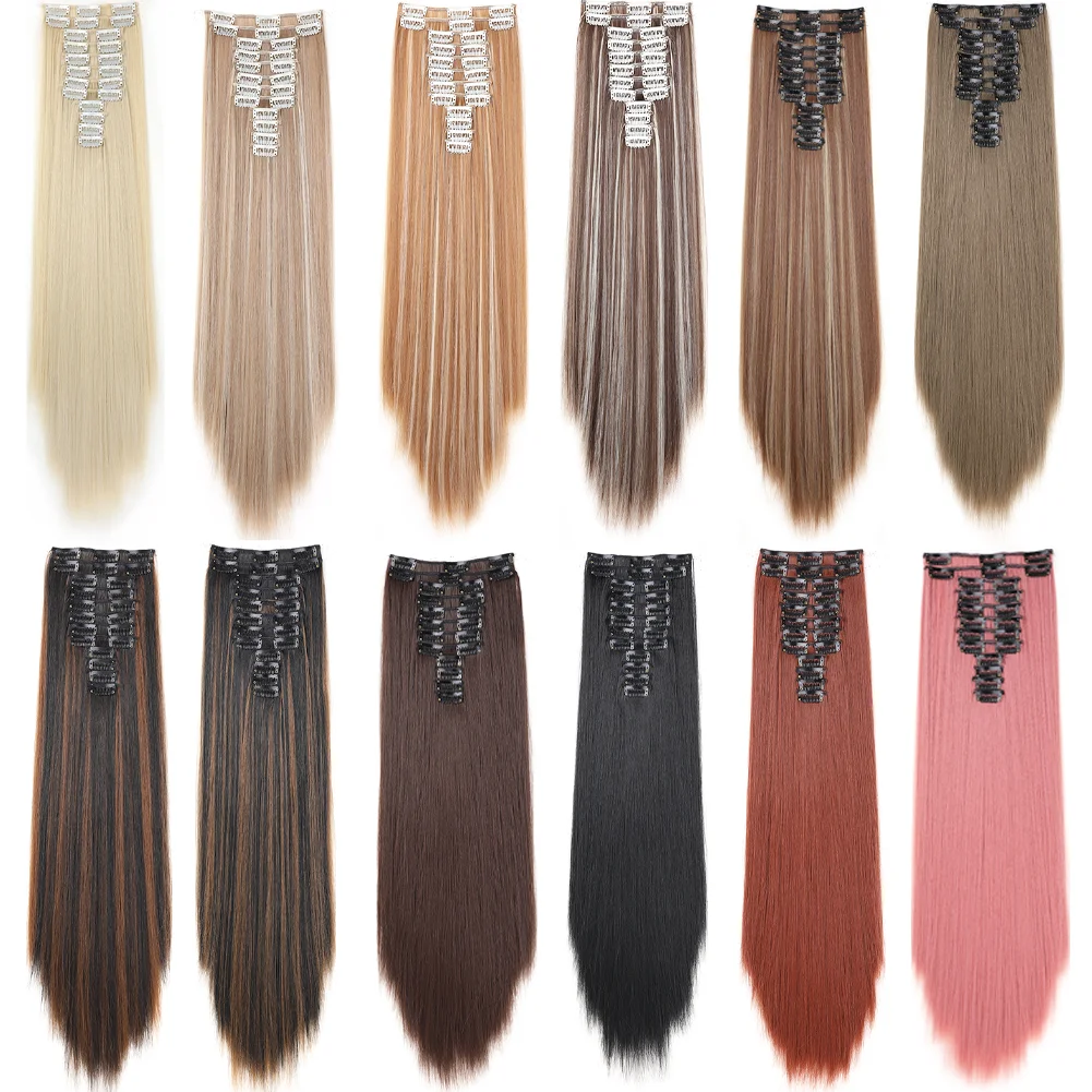 12pcs/set Clip in Hair Extensions Long Straight Hairstyle 22 Clips Synthetic Hairpieces for Women