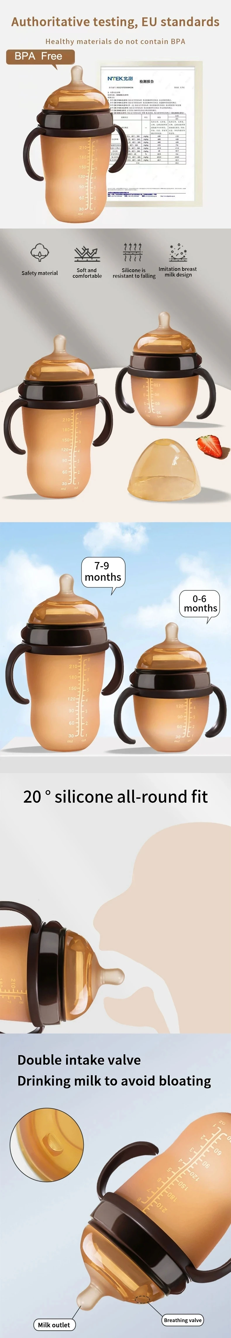 150/250ML Newborn Baby Bottles Silicone BPA Free Anti-Choke Anti-flatulence 0-24 Month Infant Milk Feeding Bottles With Handle