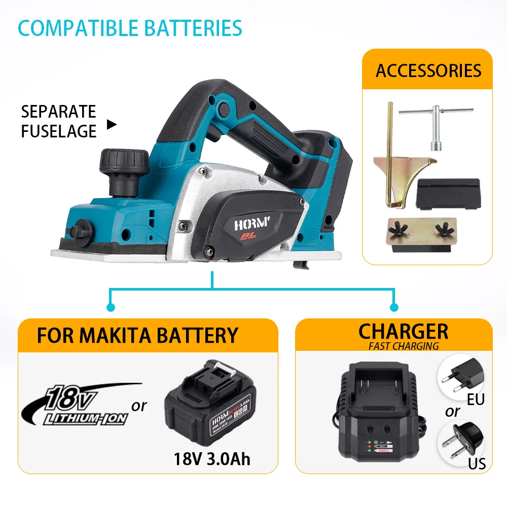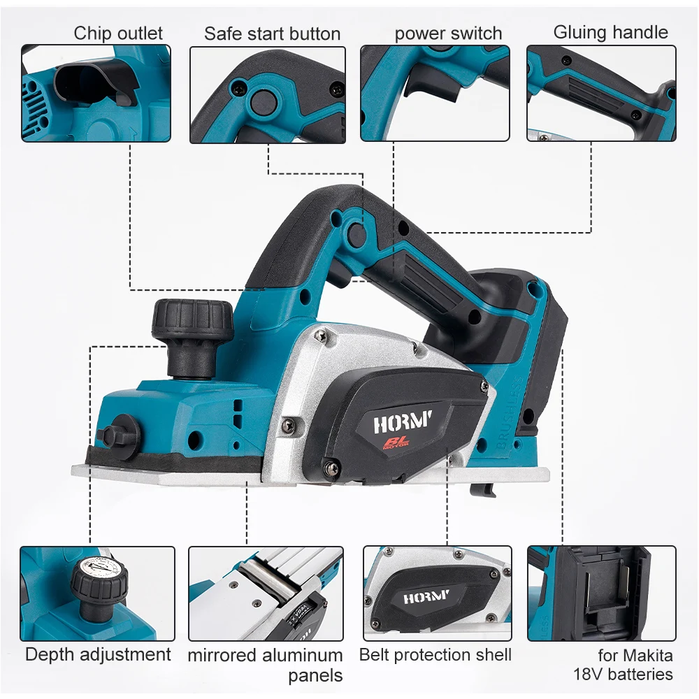 15000RPM Brushless Electric Planer Cordless Handheld Power Planer Home DIY Furniture Cutting Woodworking Tool For Makita Battery