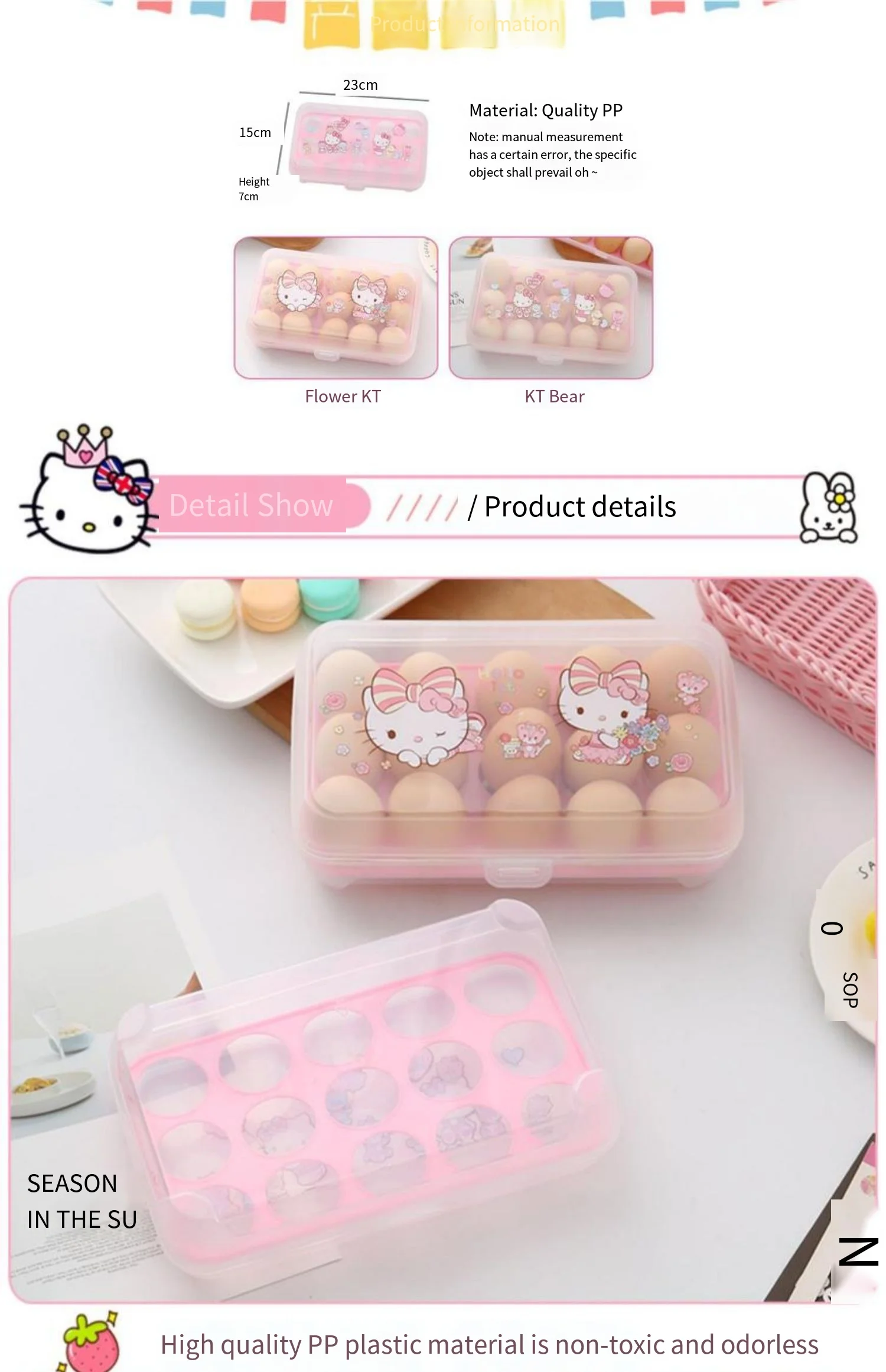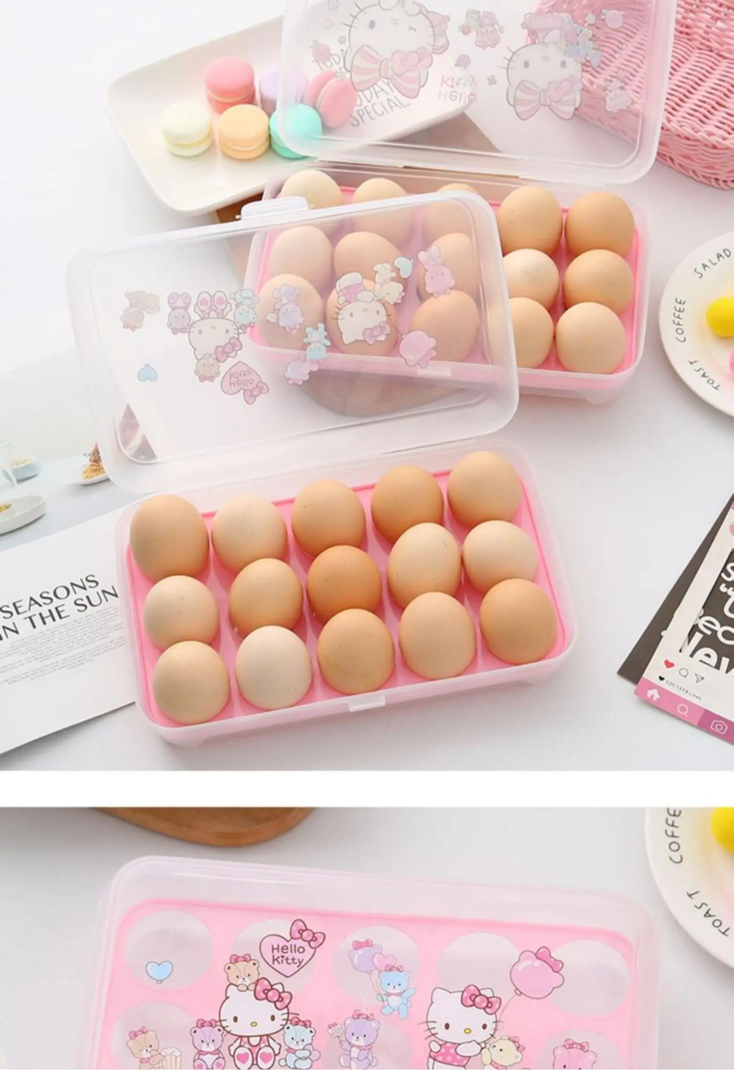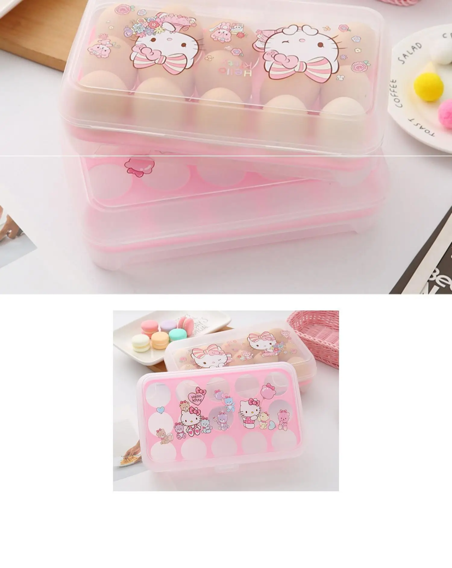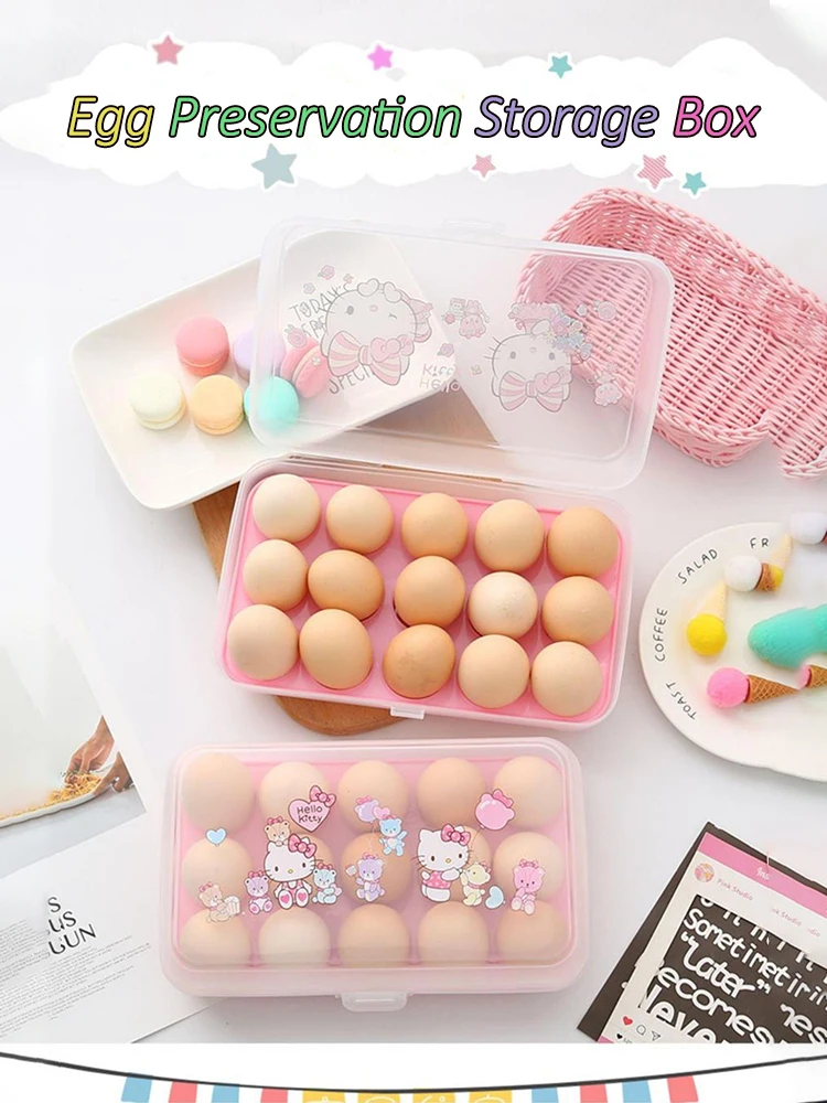 15Grid Hello Kitty Transparent Egg Preservation Box Cartoon Little Twin Stars My Melody Egg Box With Lid Refrigerator Egg Holder