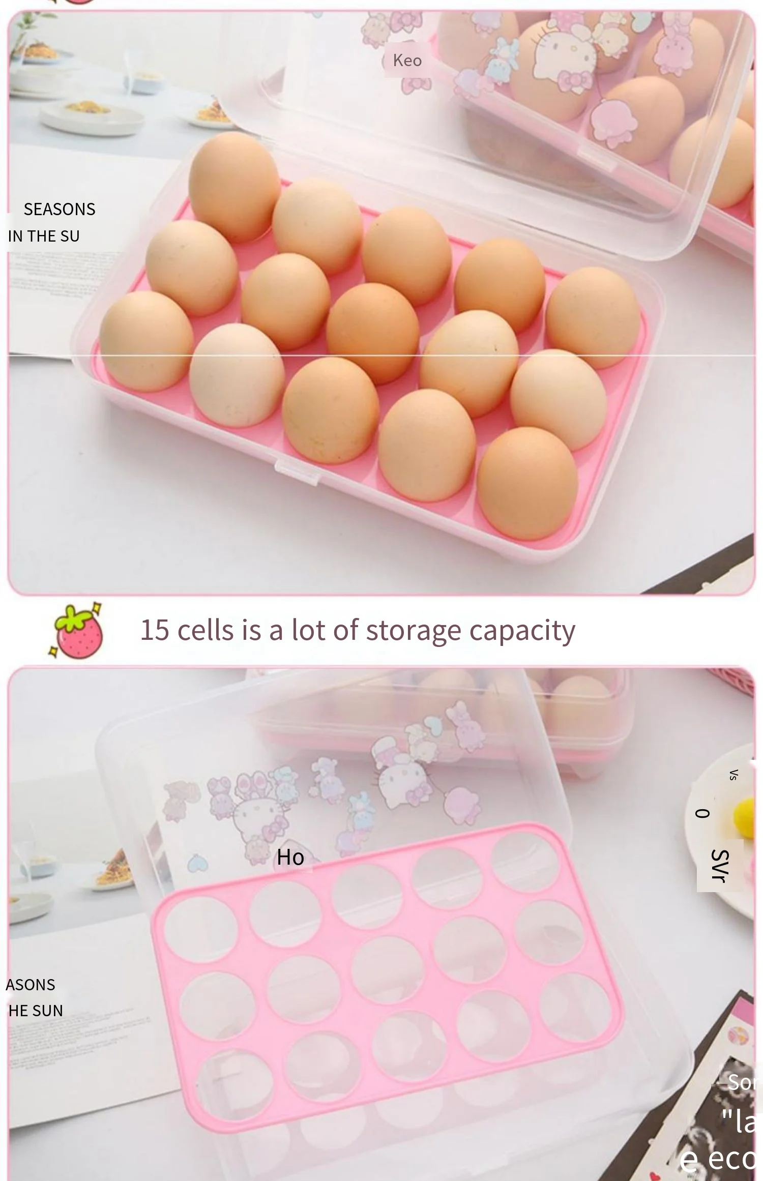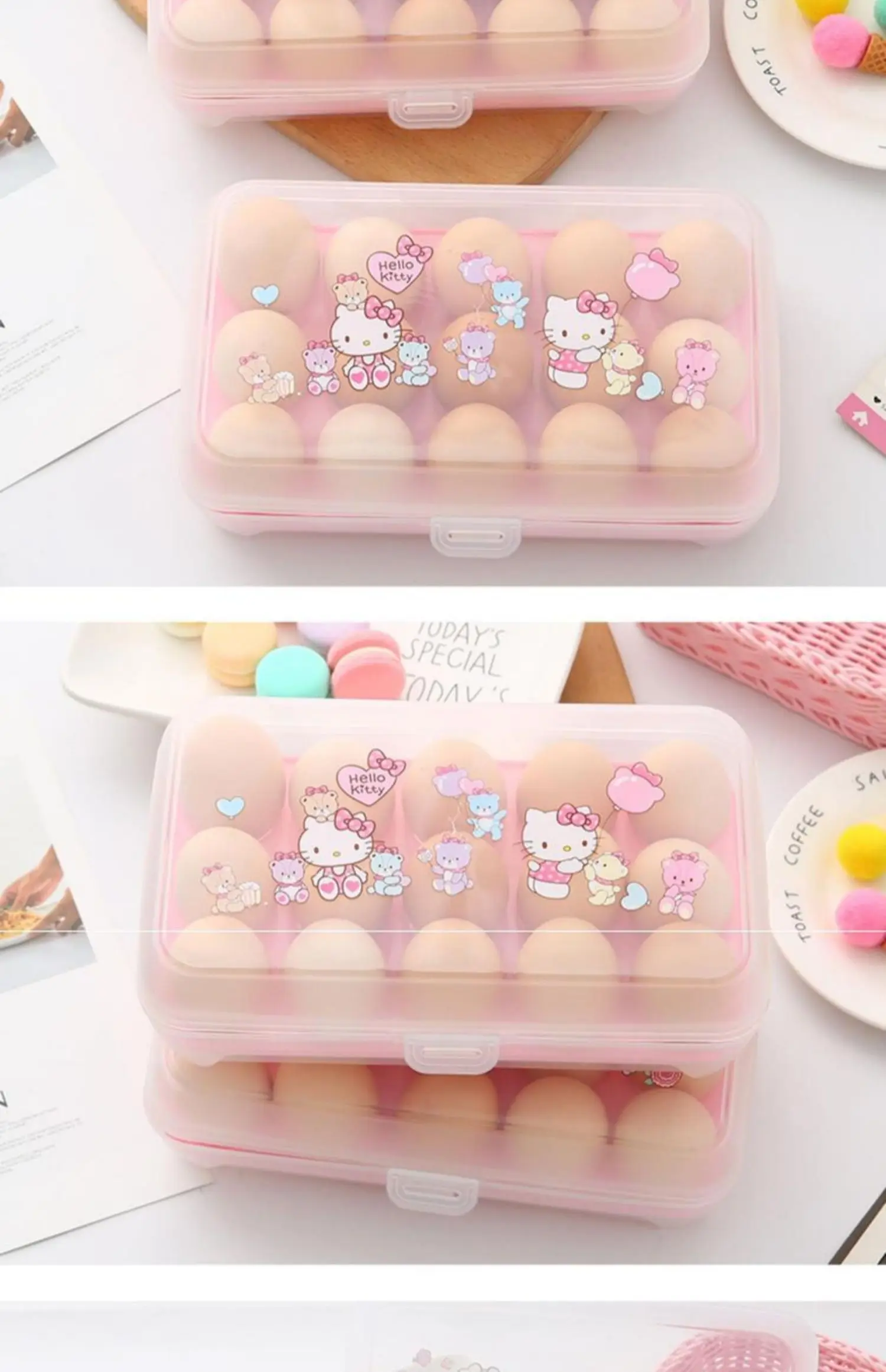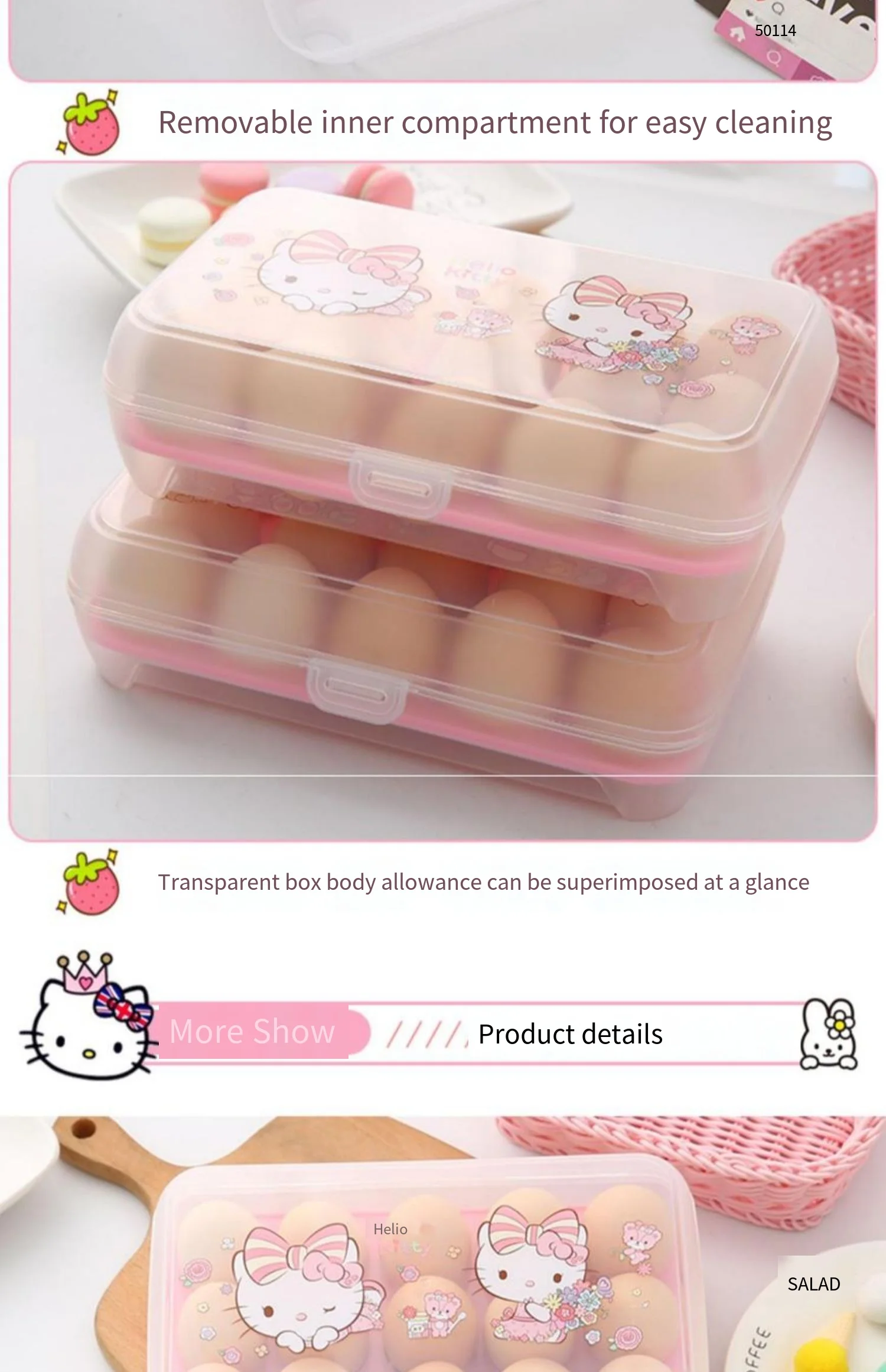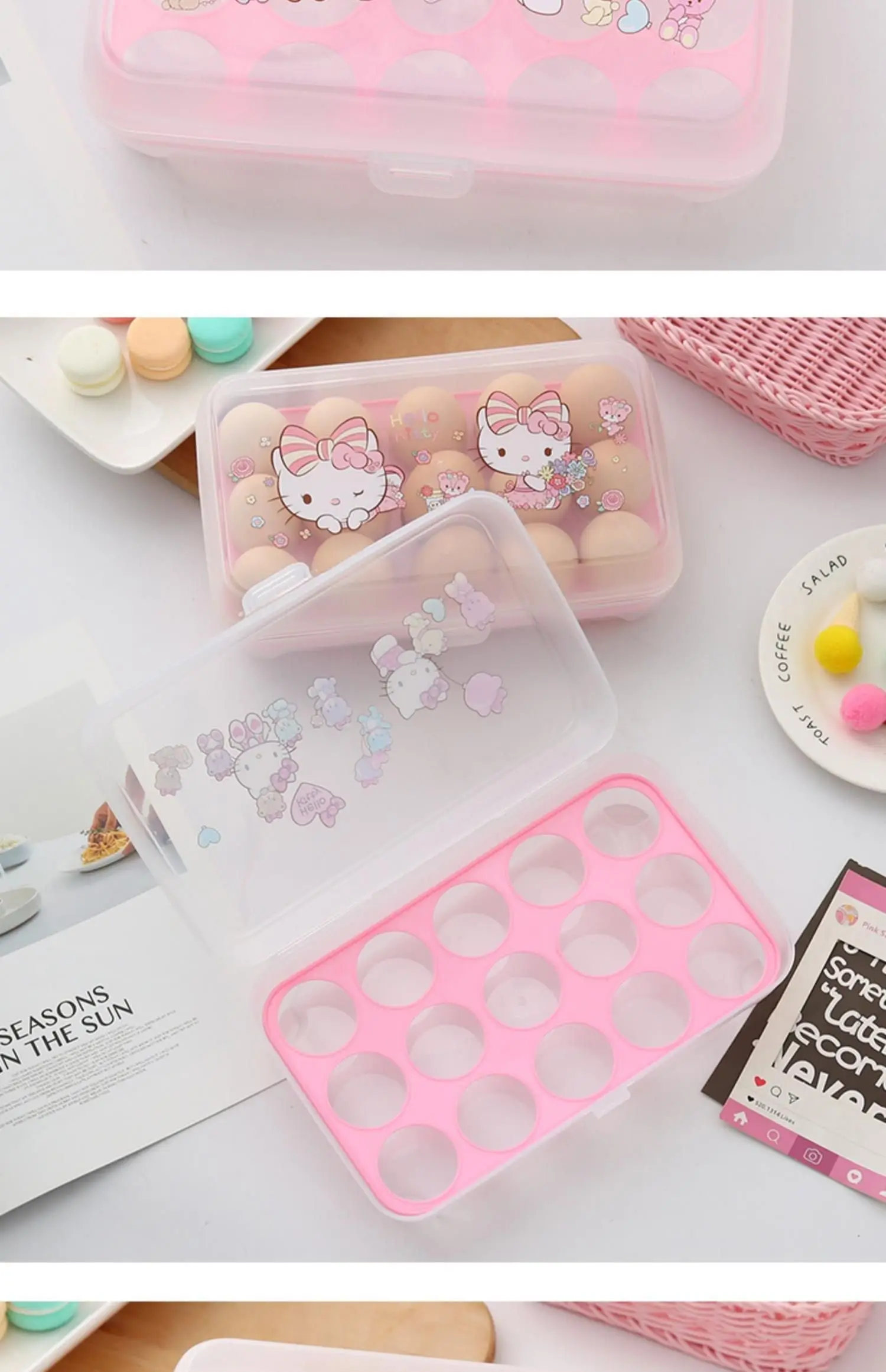 15Grid Hello Kitty Transparent Egg Preservation Box Cartoon Little Twin Stars My Melody Egg Box With Lid Refrigerator Egg Holder