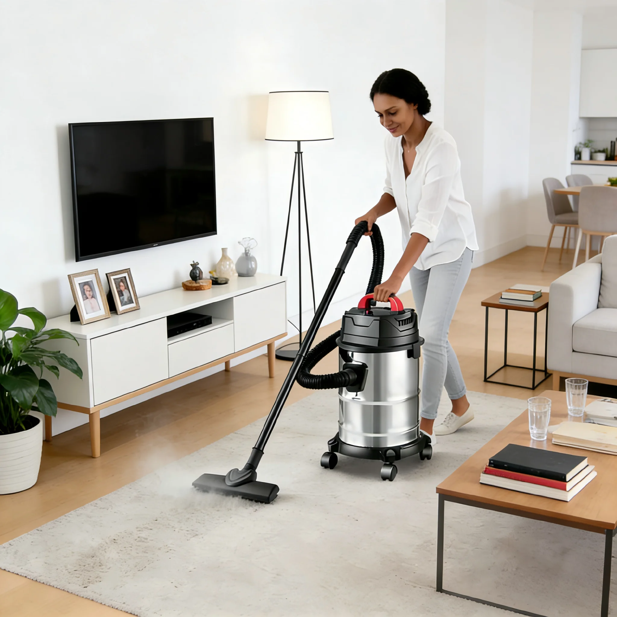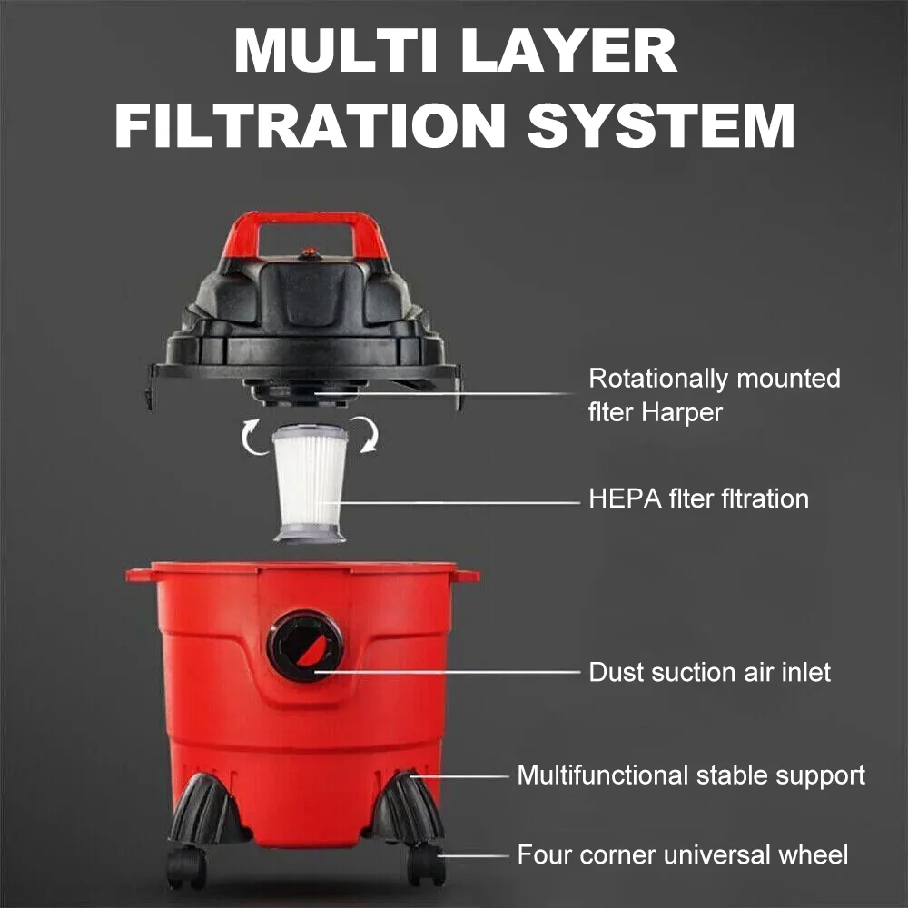 With a generous 15L capacity, this vacuum cleaner efficiently handles extensive cleaning tasks, whether at home or in commercial settings.