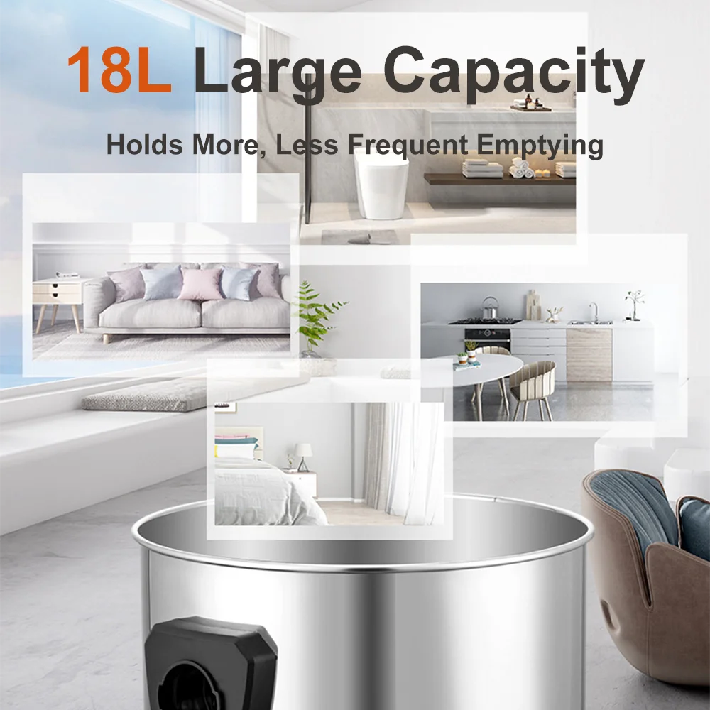 15L/18L Dry/Wet Dust Vacuum Cleaner 4m Cord Handheld Blow Function Large Bucket Design for Home Car Commercial Use
