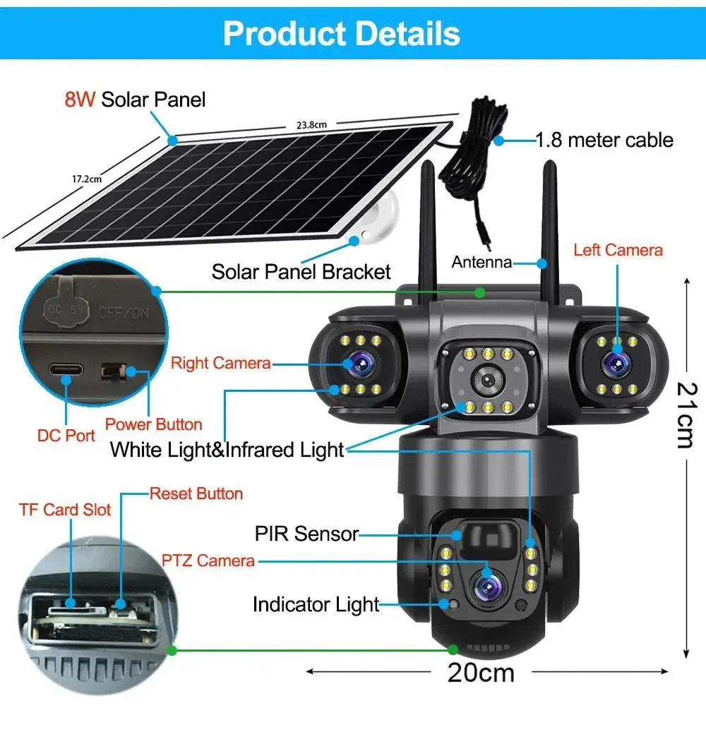 5 reviews for 15MP 8K Wifi HD Camera Three Lenses Solar ip Camera Outdoor Wireless Waterproof PIR Night Vision AI Human Tracking Surveillance