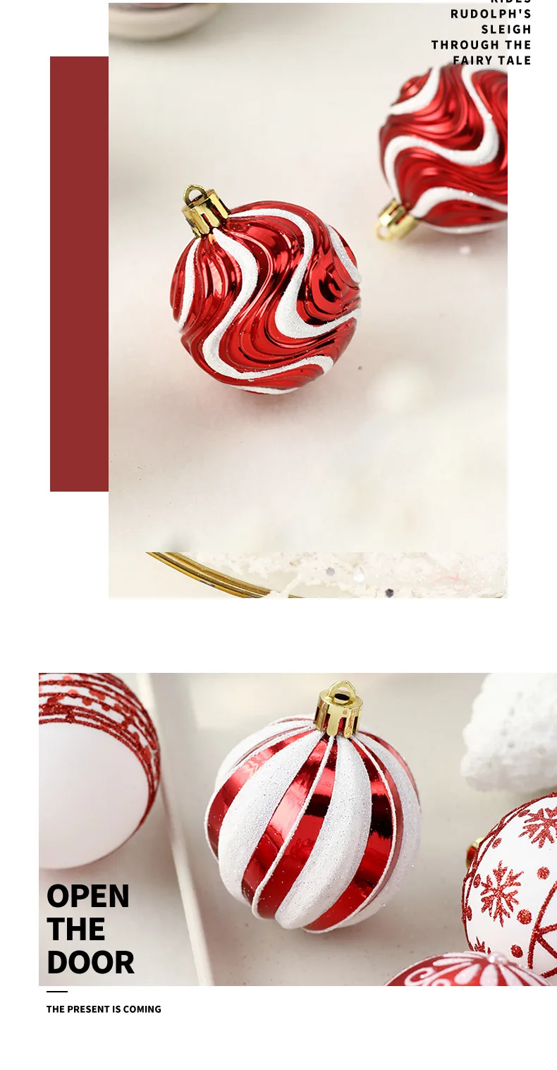 Diverse Patterns: The Christmas ornaments feature a variety of patterns, such as snowflake designs, stripes, and irregular patterns. The rich pattern designs enhance the fun and aesthetic appeal of decorations, catering to consumers’ personalized needs for creating a festive Christmas atmosphere.