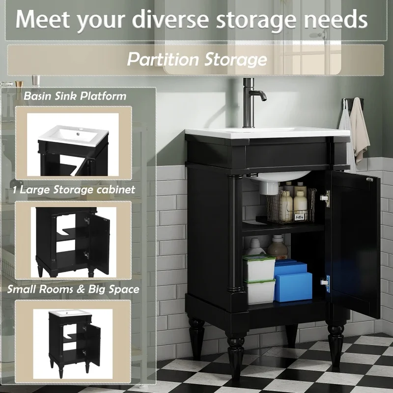 18-Inch Freestanding Bathroom Vanity with Sink, Contemporary Storage Cabinet with Door for Small Spaces