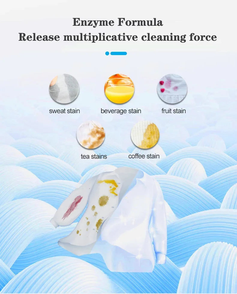 2.Main ingredients: water softener, biological enzyme, bacteriostatic agent, acaricide, polymer fabric softener, etc.