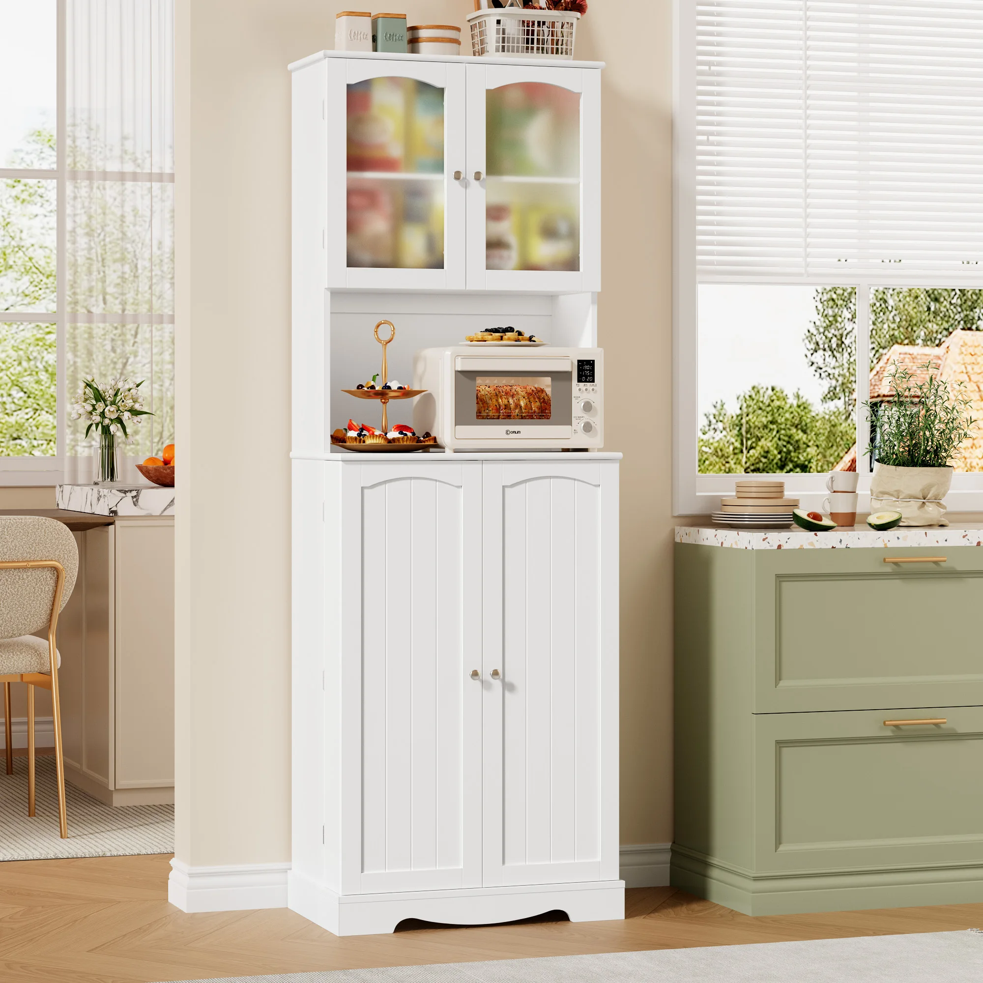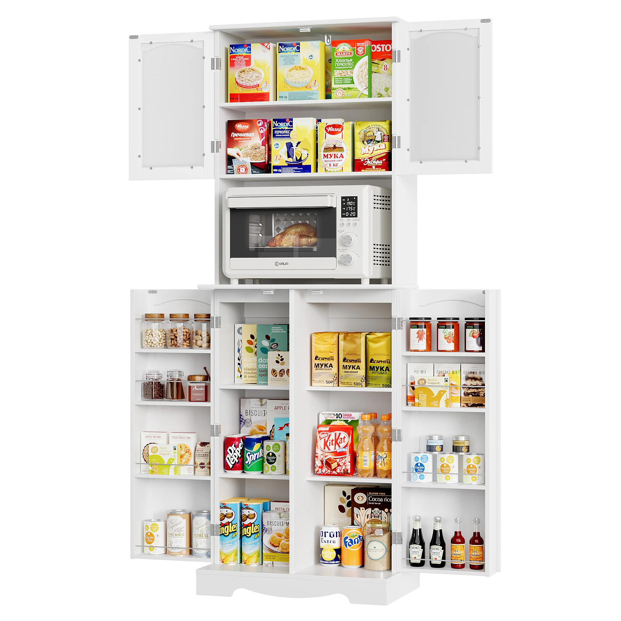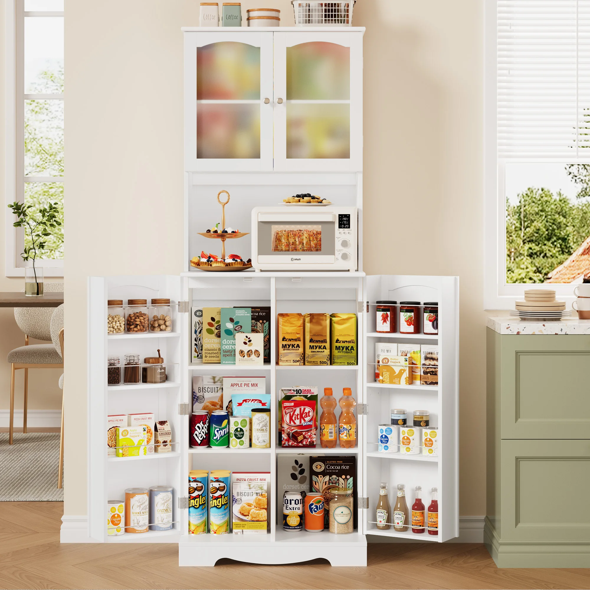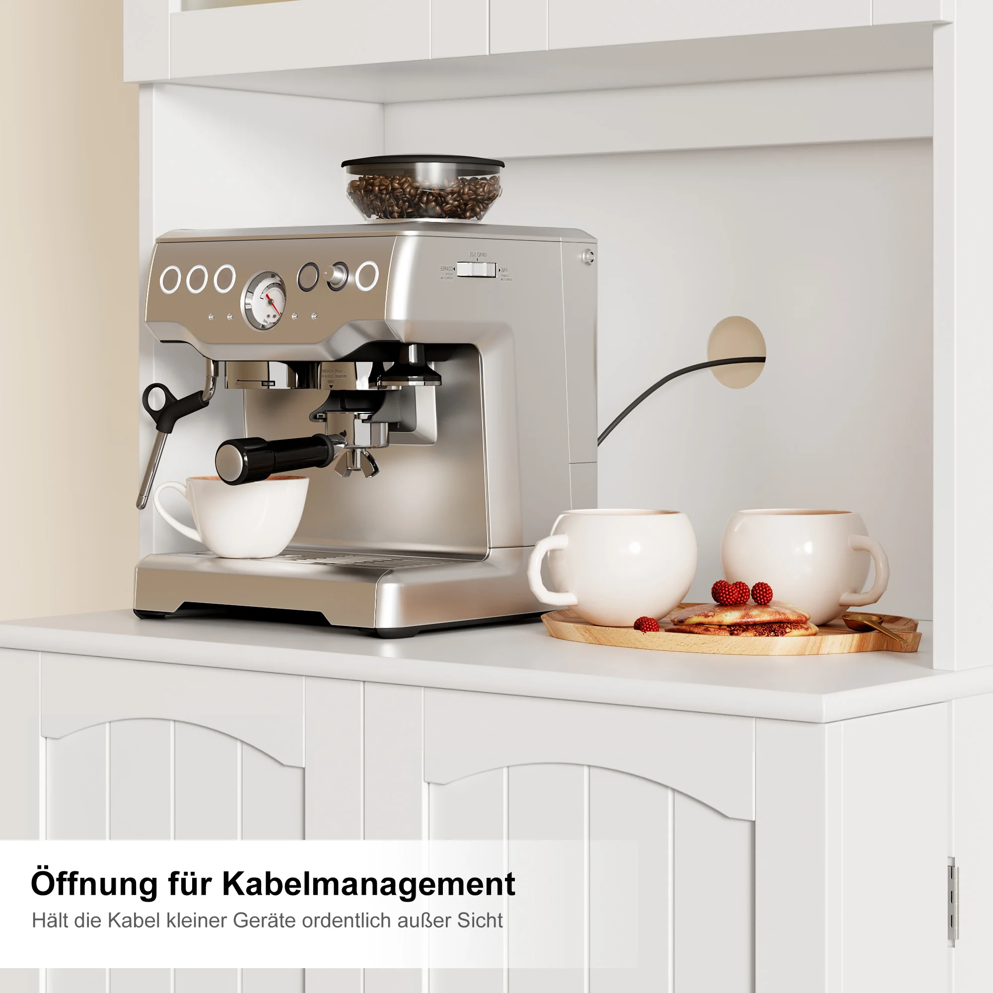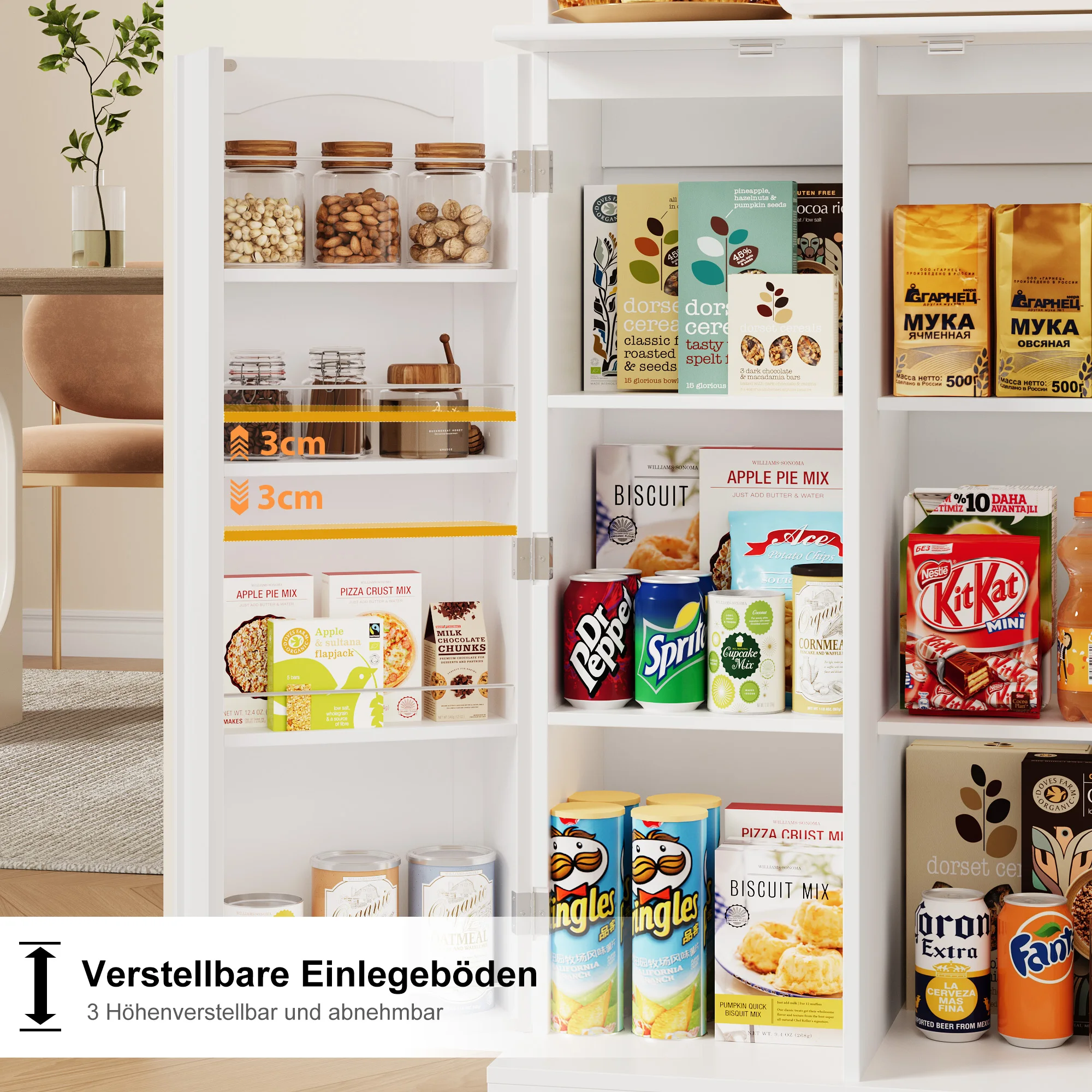 [Viel Stauraum]: Diese Hochschrank Küche Holz verfügt über eine offene Arbeitsplatte in der Mitte, 8 Regale in 2 Schränken und 8 Seitenregale an der Innentür und bietet so klassifizierten Stauraum für Mikrowelle, Toaster, Kaffeemaschine, Besteck oder andere Lebensmittel Gegenstände, leicht zugänglich und organisiert