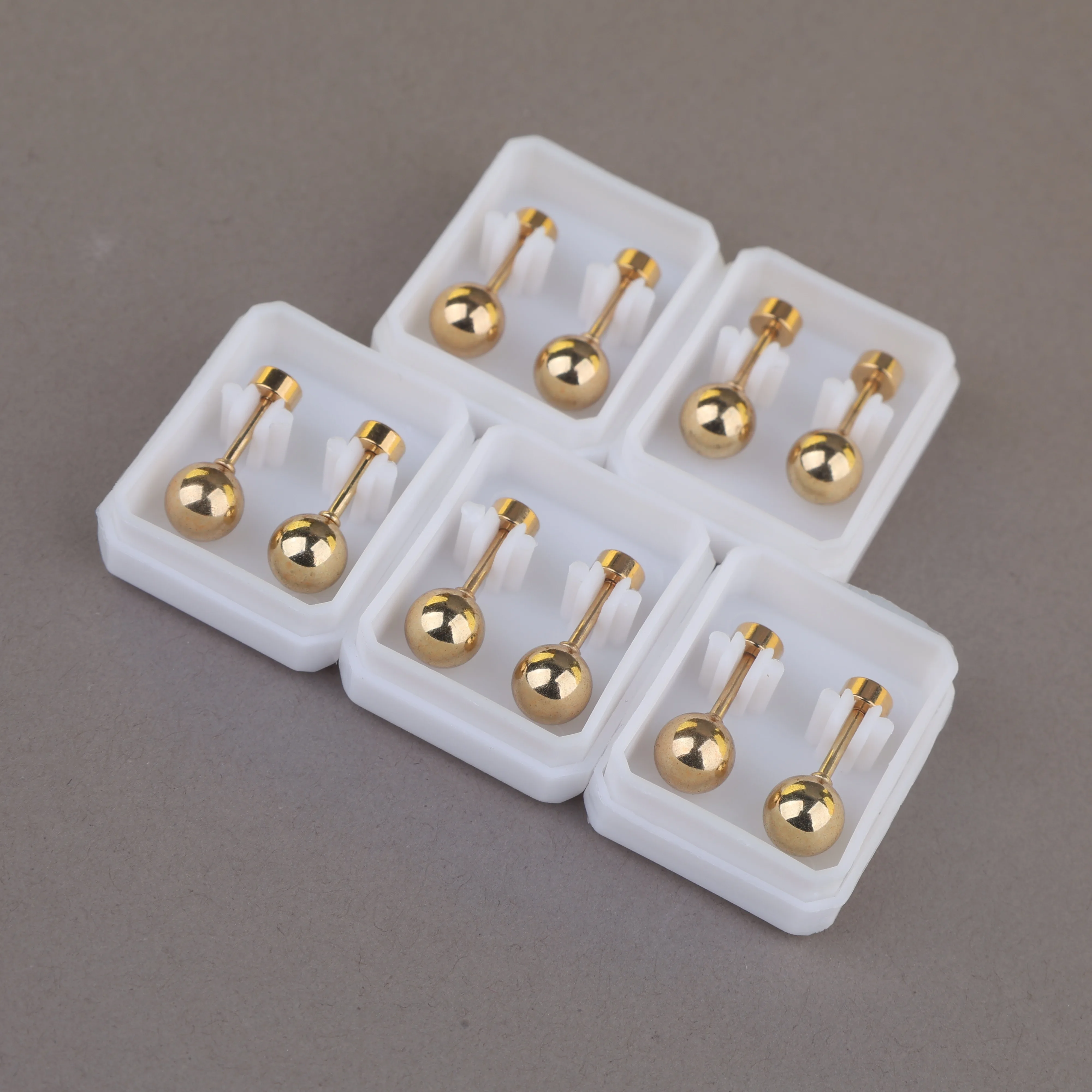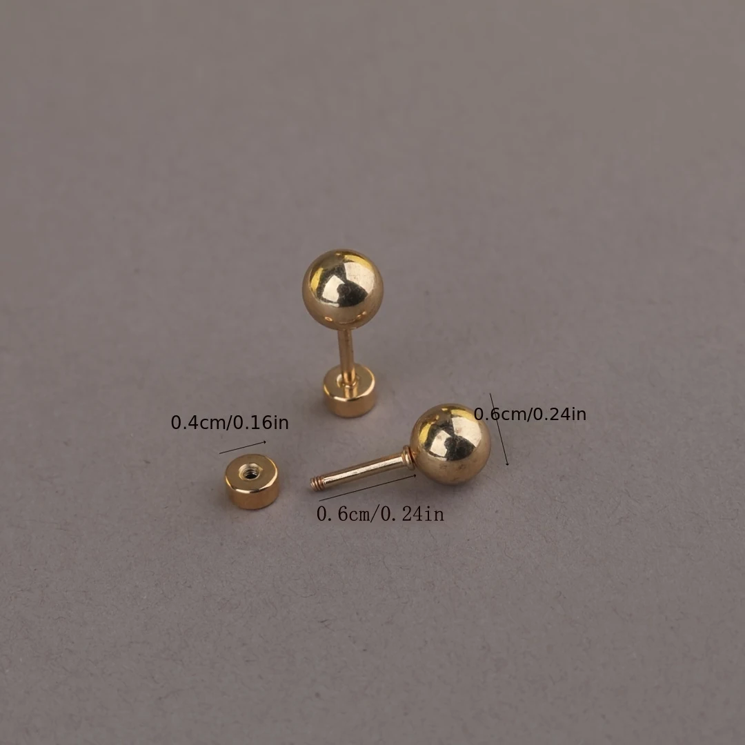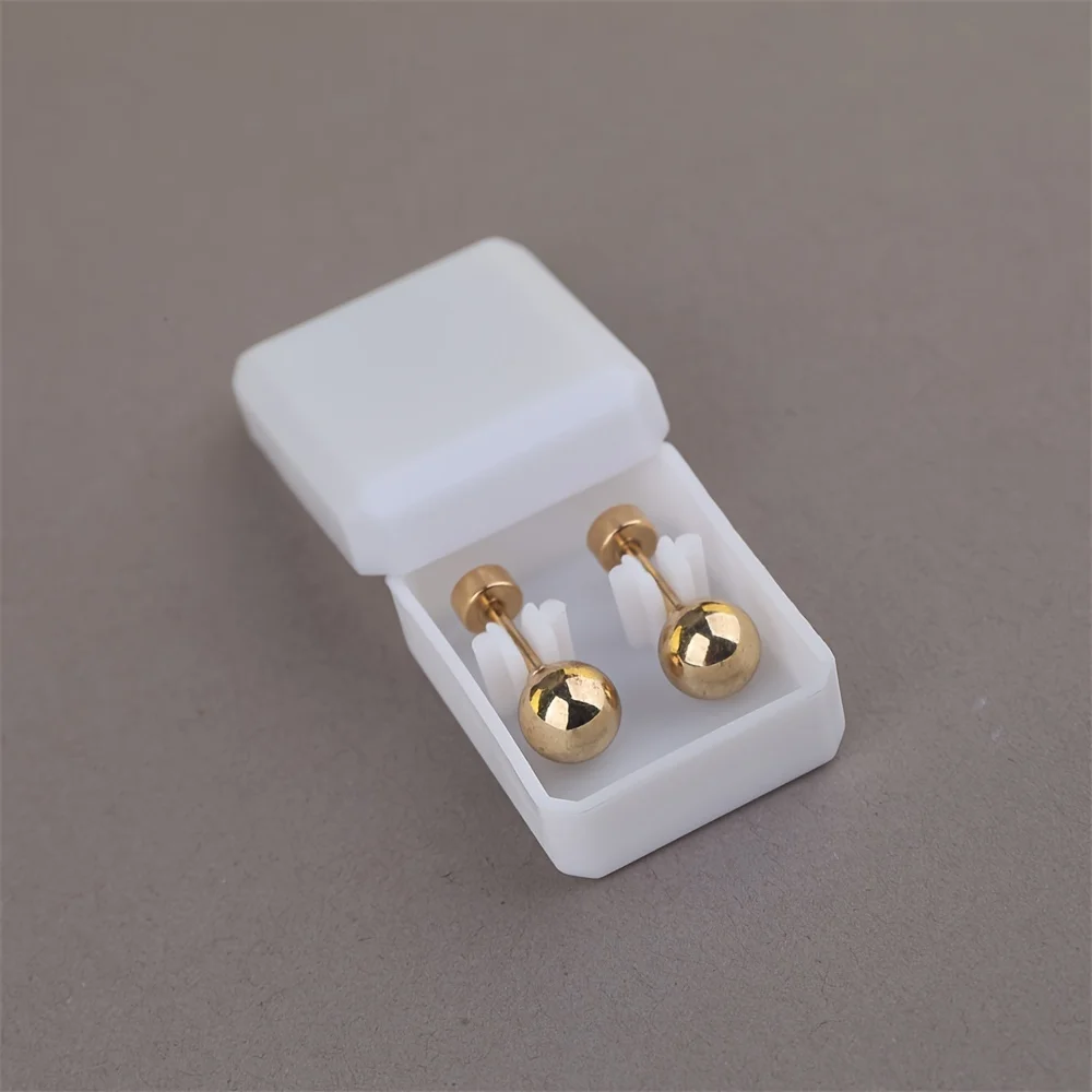 1pair Boxed 6MM Stainless Steel Geometric Round Shape Glossy Ball Screw Back Stud Earrings For Women Men Ear Piercing Jewelry