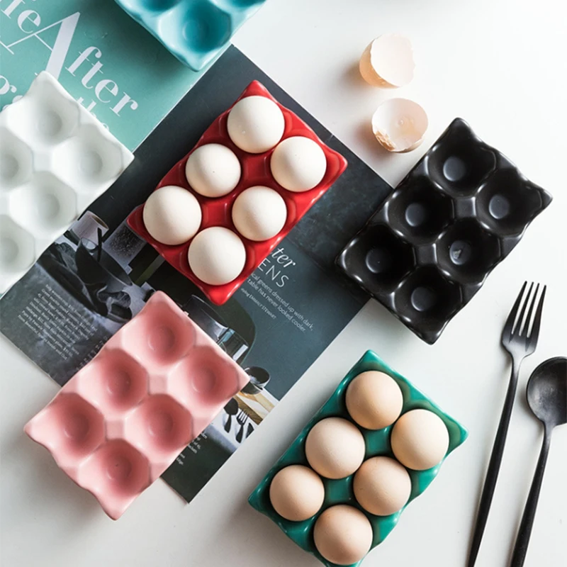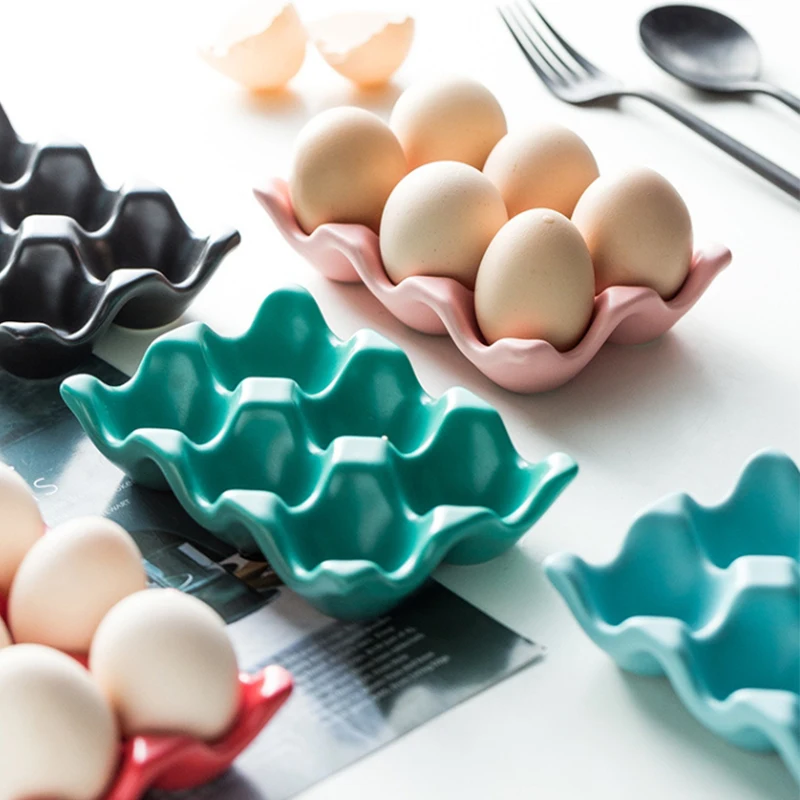 6 Grids Egg Holder Ceramic Anti-Slip Egg Box Refrigerator Shockproof Egg Tray Holder Storage Box Home Storage Organization