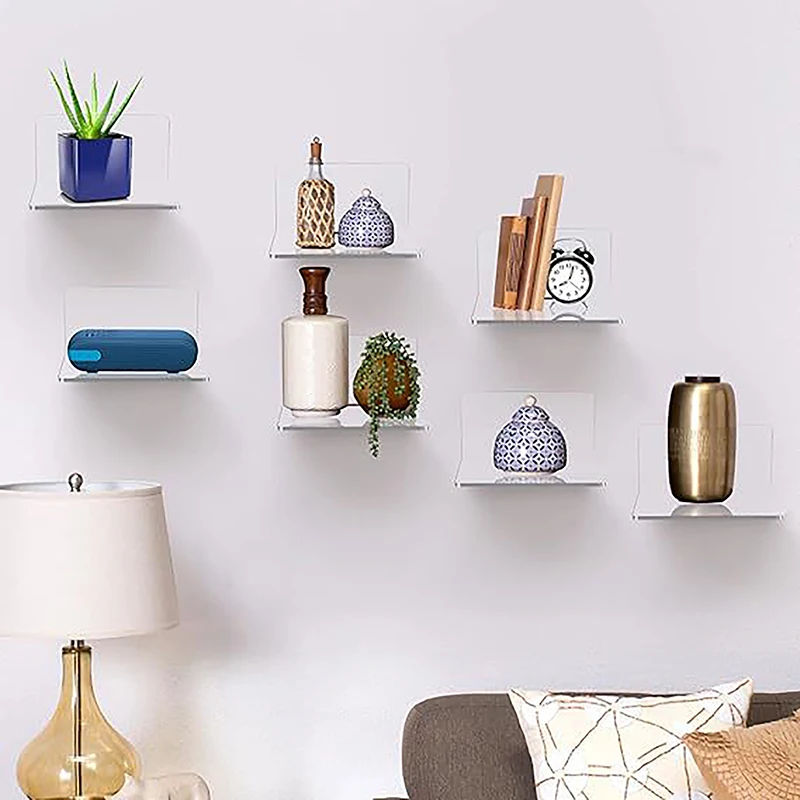 The package includes 1 clear acrylic floating shelf, which helps to effectively utilize your wall space and turn the useless space on the wall into a spacious storage area.