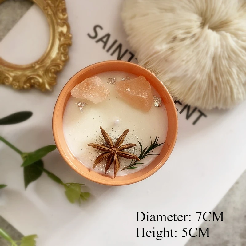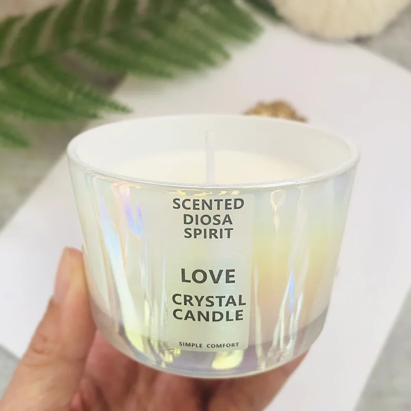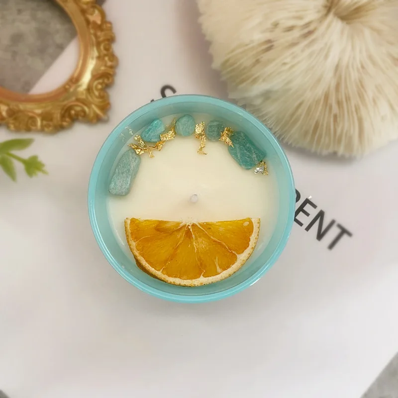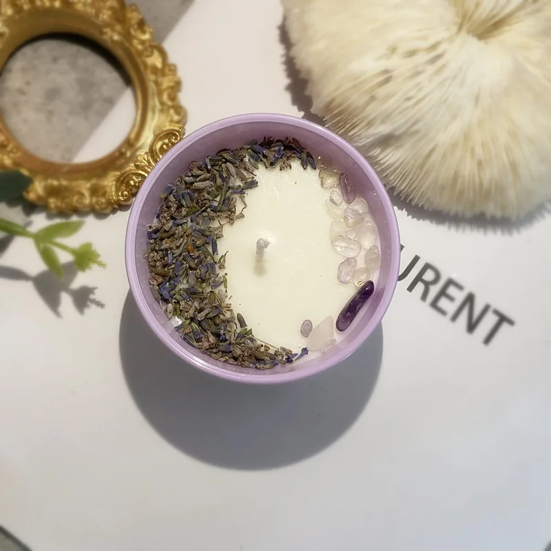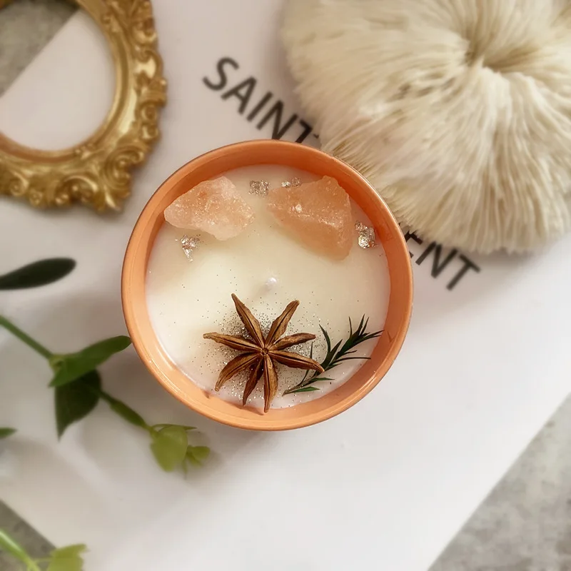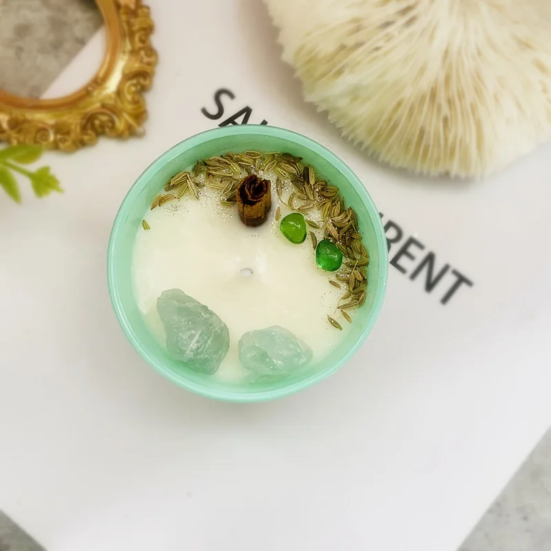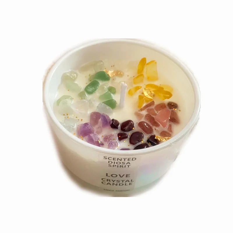 Colorful natural crystal stones paired with milky white wax create a comfortable atmosphere for both aromatherapy and tabletop decoration