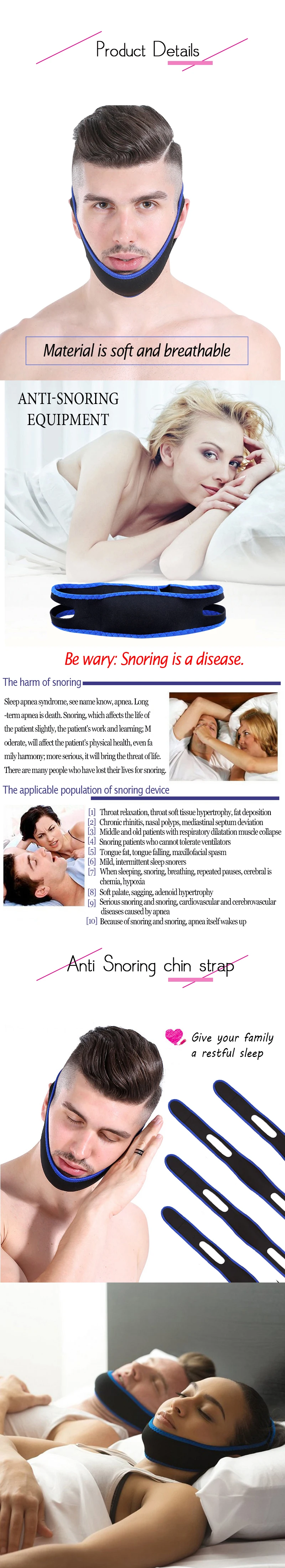 1.Only snoring band, small and lightweight, suitable for length, with ductility, both ends of the Velcro, easy to use