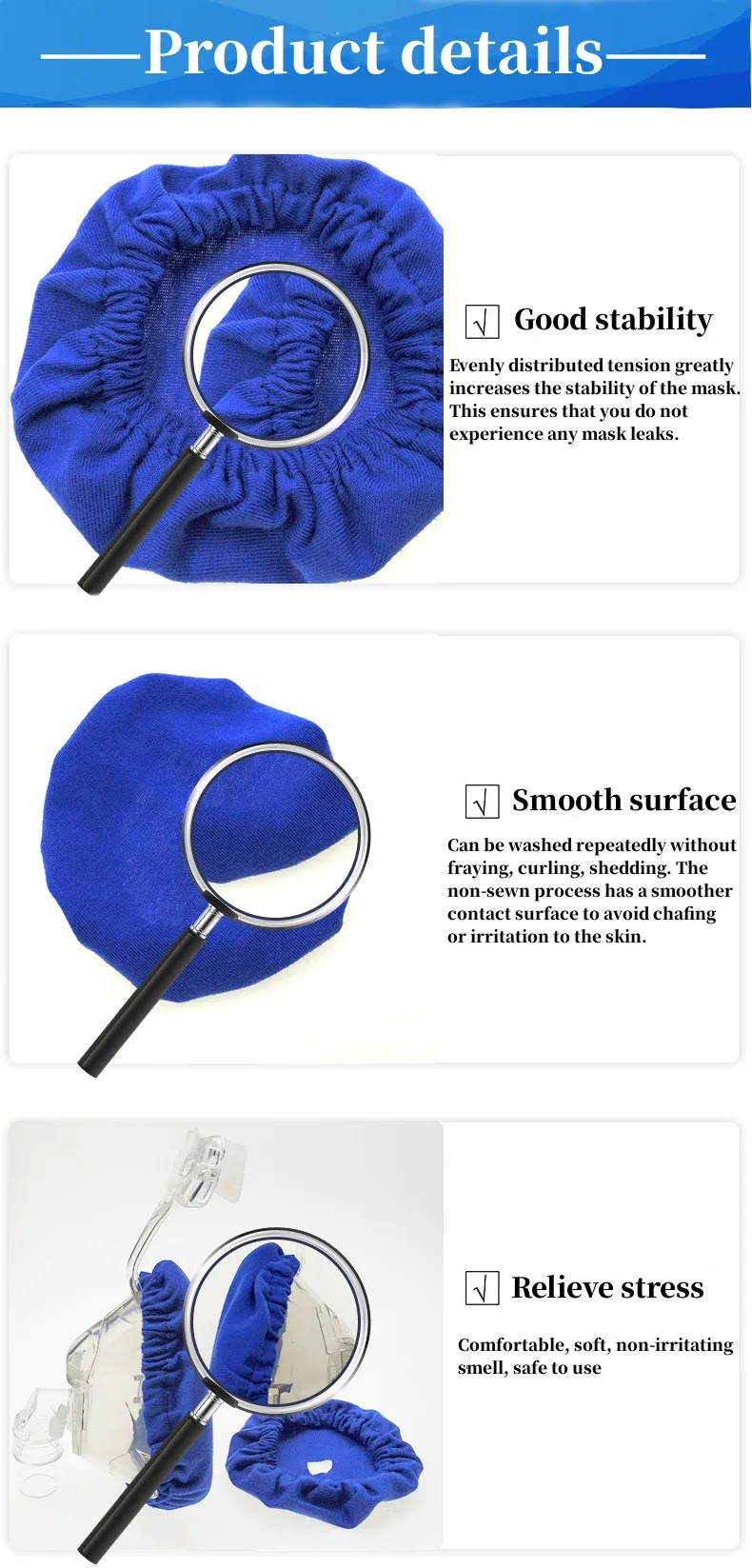 1. Ultra Soft fabric makes your mask more comfortable. NO MORE high-pitched noise from air leaks throughout the night.