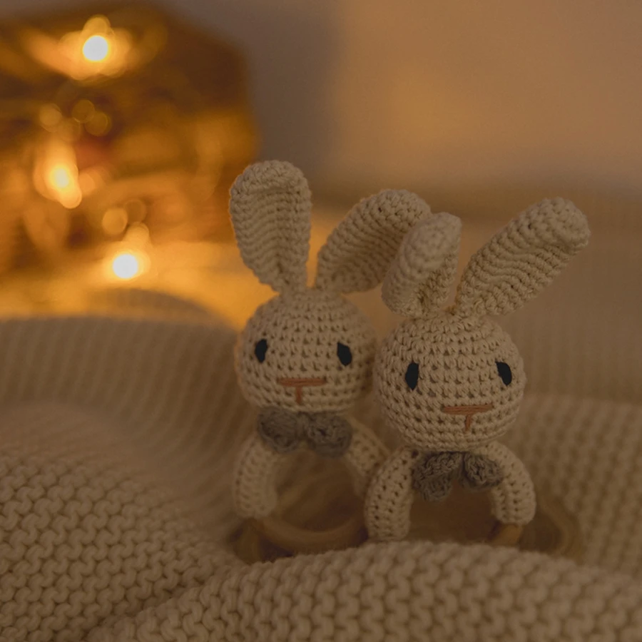 1Pc Customized Baby Teether Wooden Bracelet Crochet Rattle Toys BPA Free Crochet Lemon Bunny Rodent Rattle Newborn Toys Gift