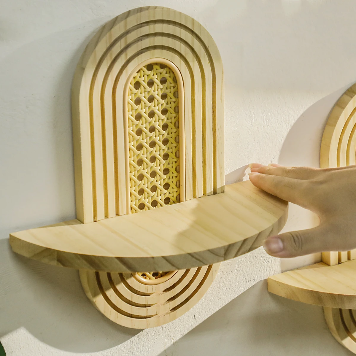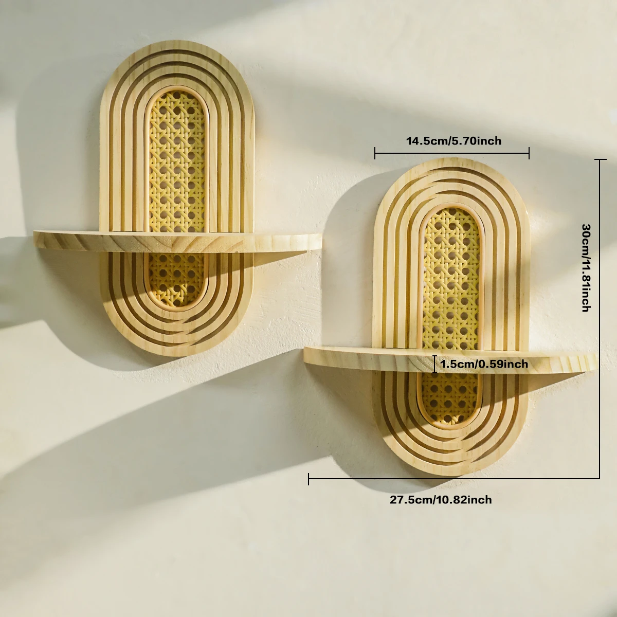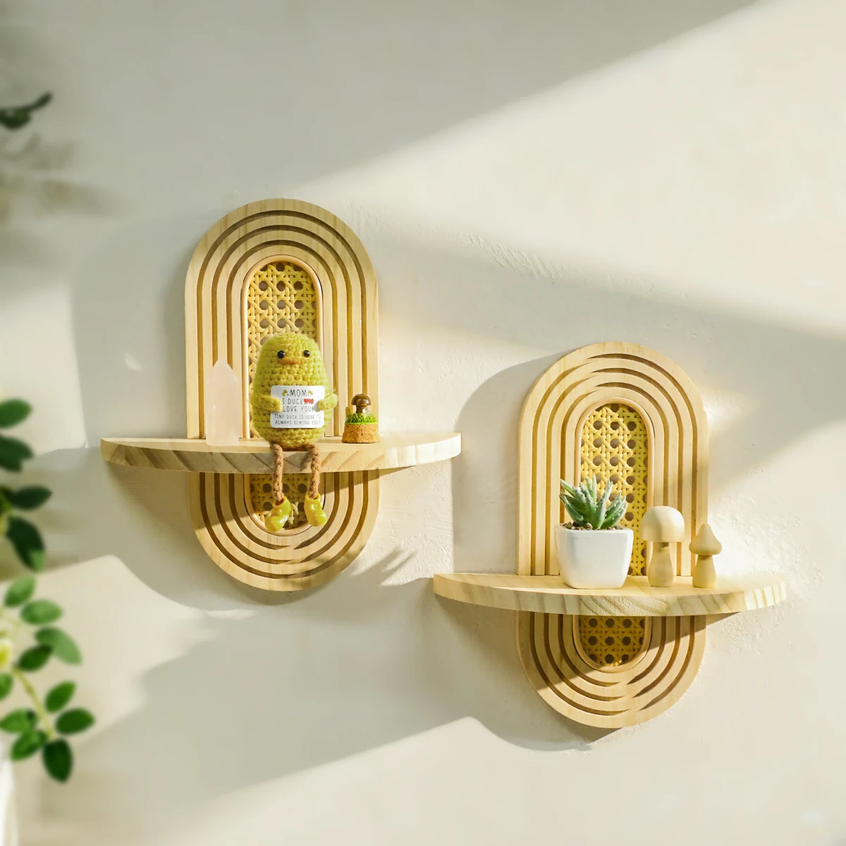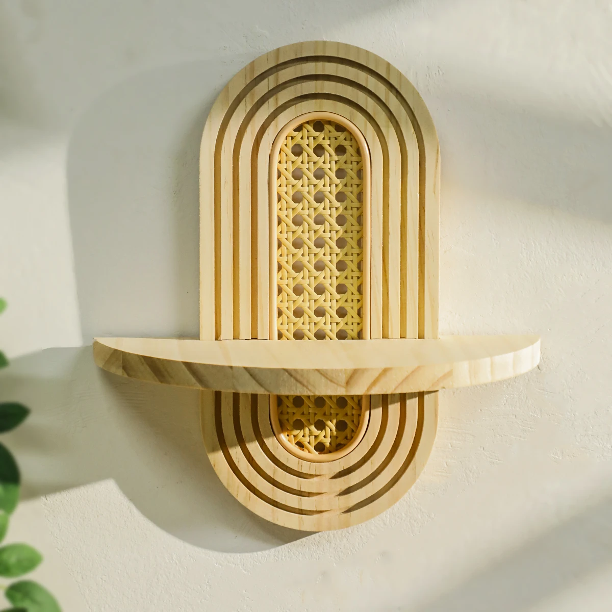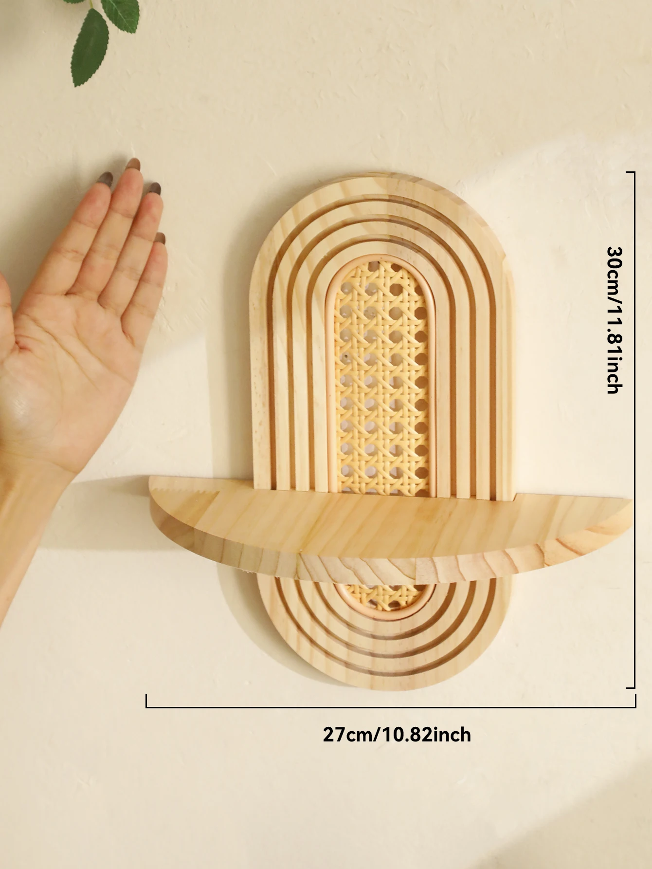 Infuse a touch of rustic charm with this boho-style wooden shelf, perfect for adding a unique aesthetic to any room.