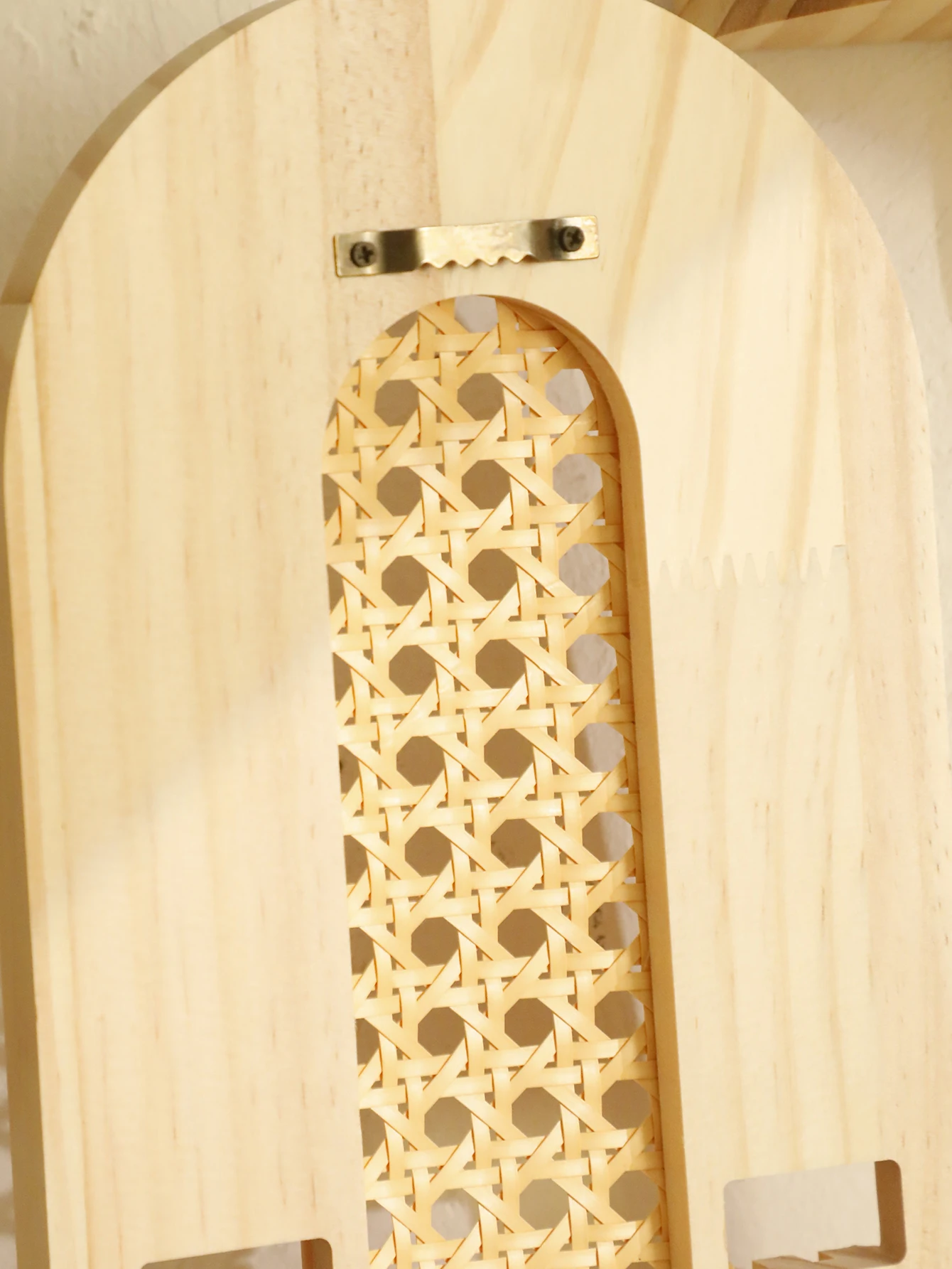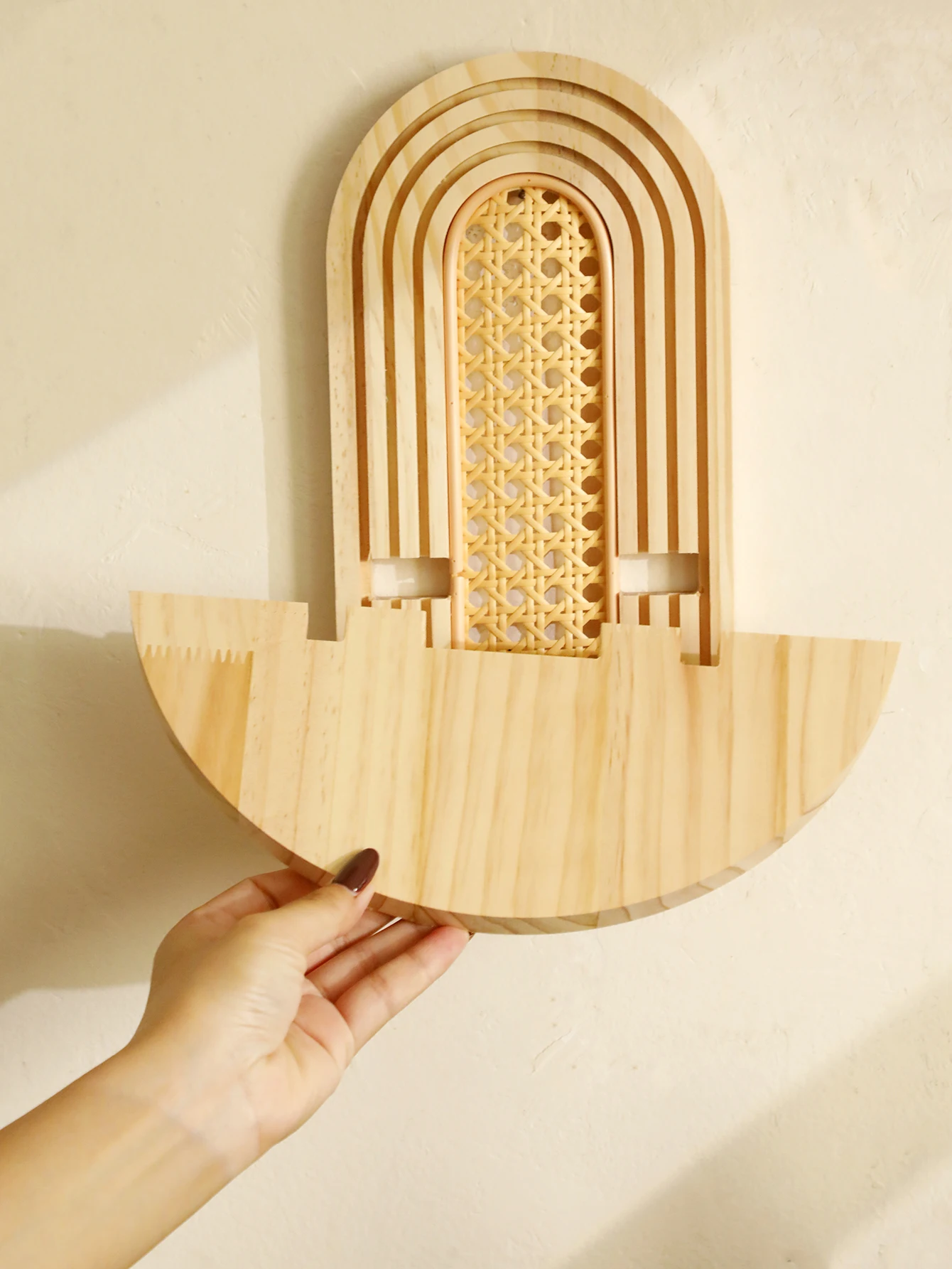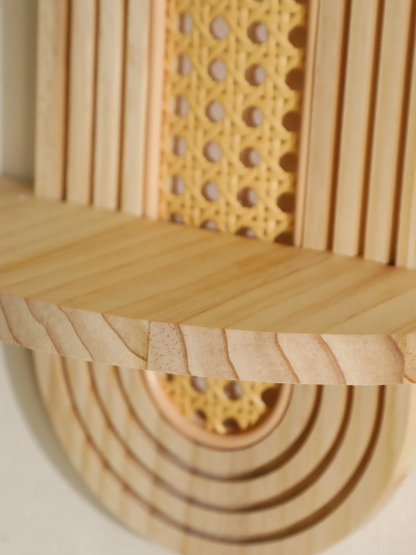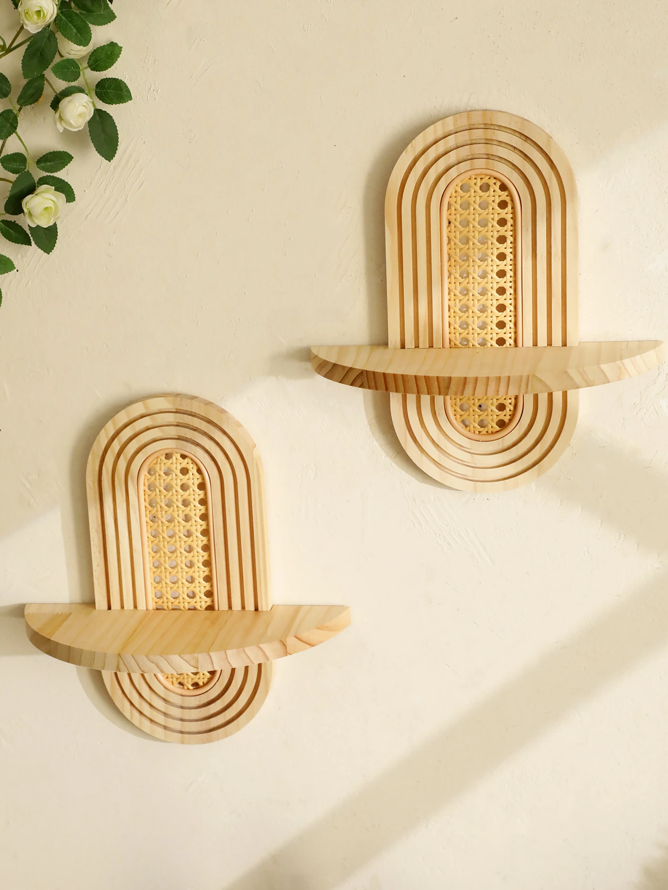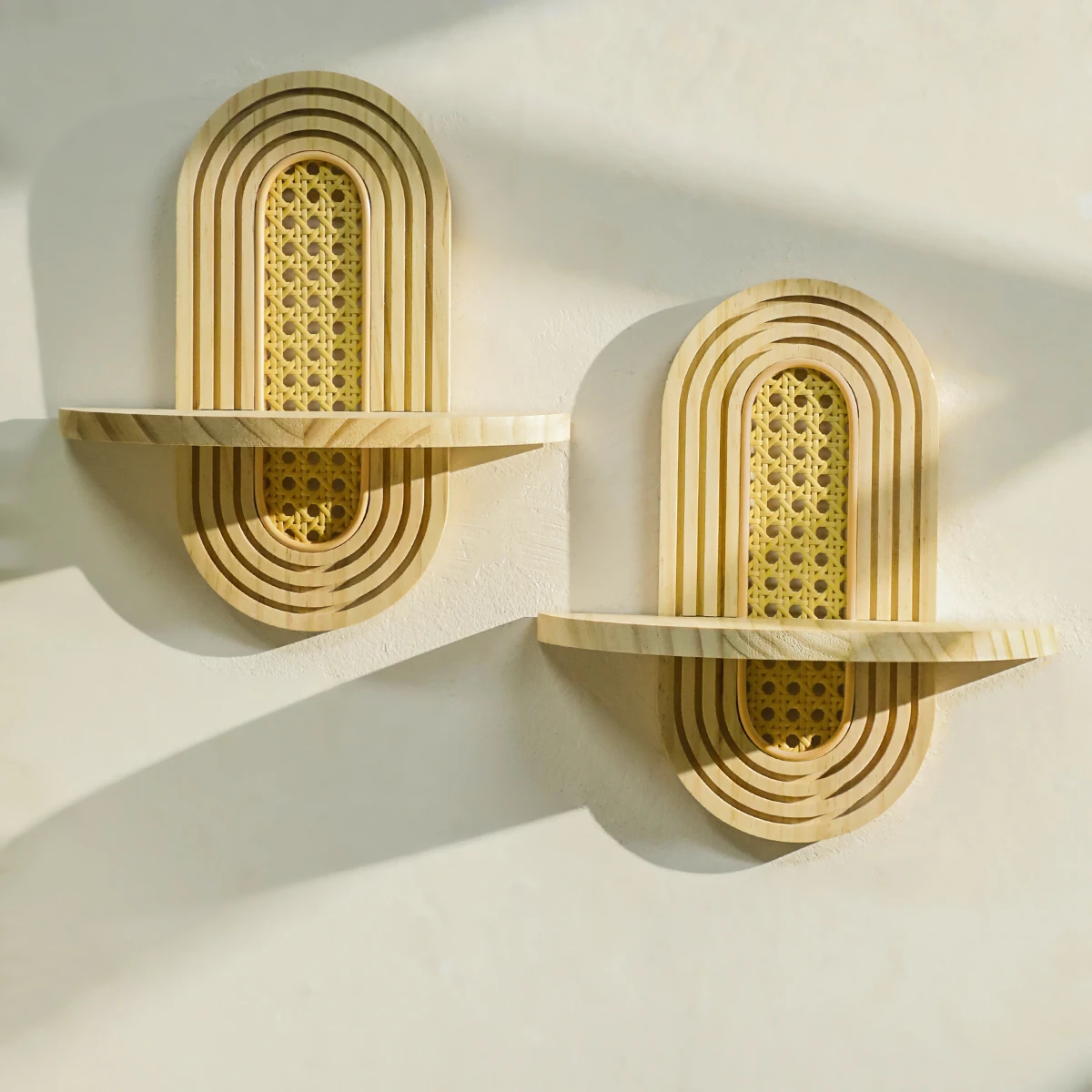 Infuse a touch of rustic charm with this boho-style wooden shelf, perfect for adding a unique aesthetic to any room.