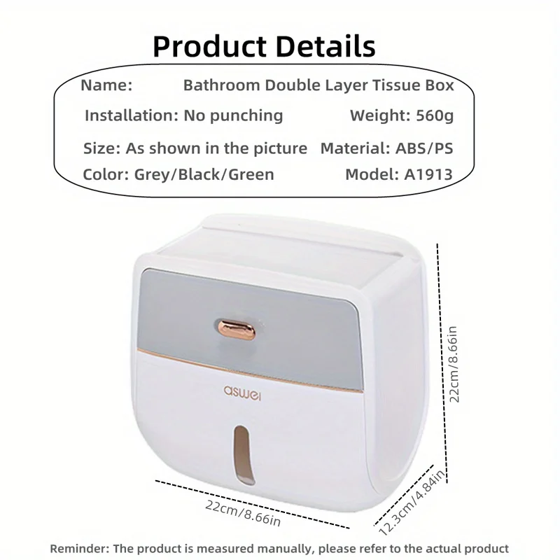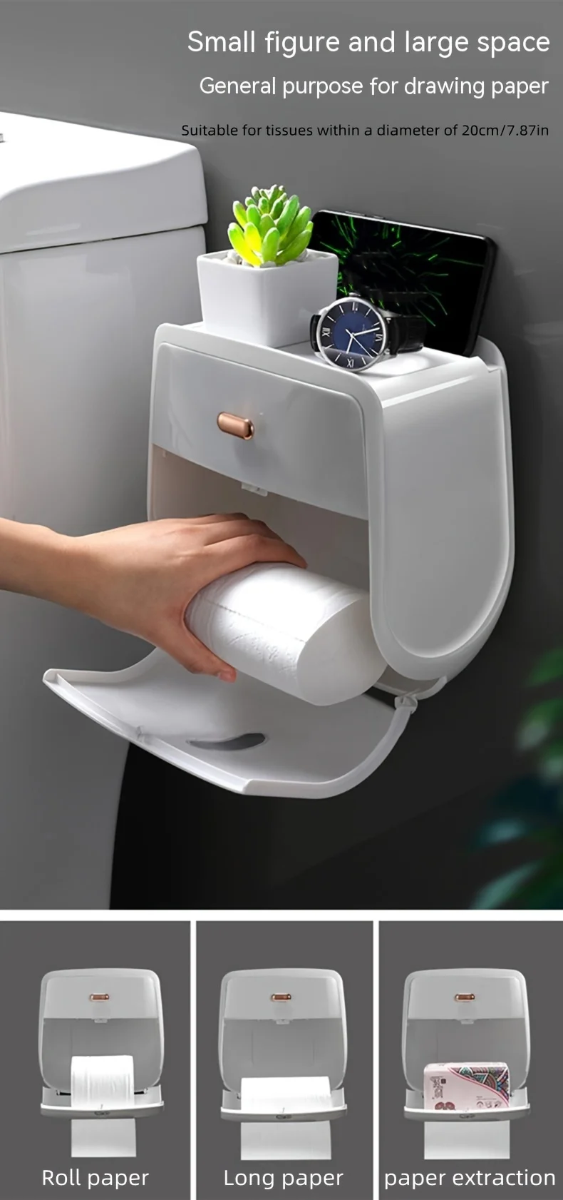 1pc No-Drill Toilet Paper Holder,Bathroom Organizer | Self-Adhesive Wall Mount for Tissues/Wipes, Bathroom Tissue Dispense