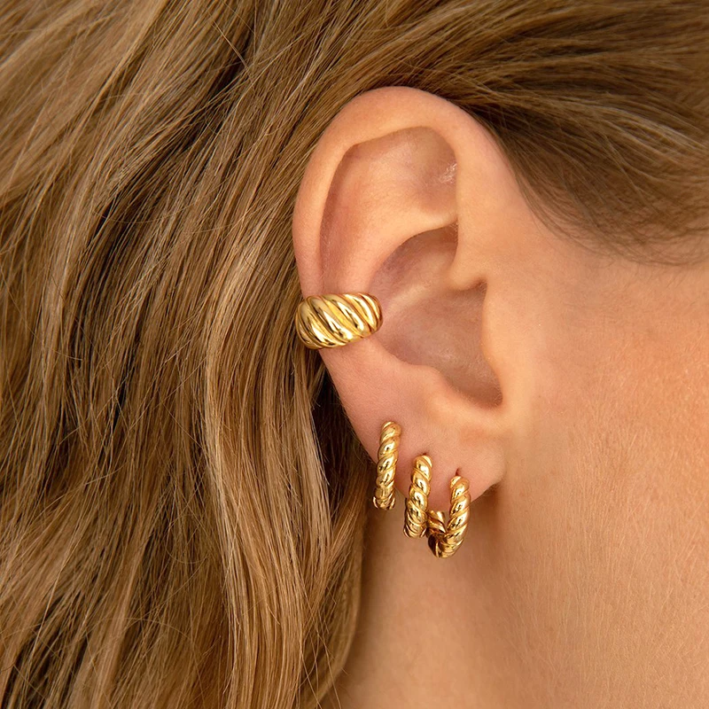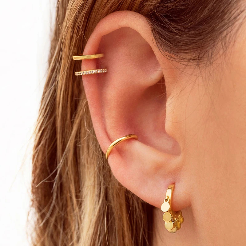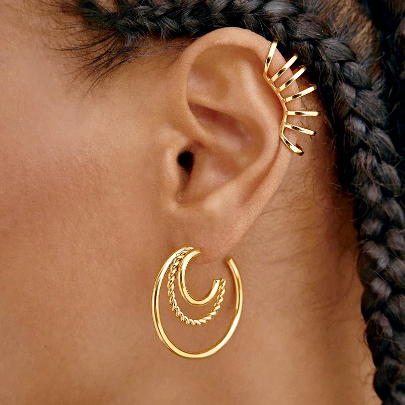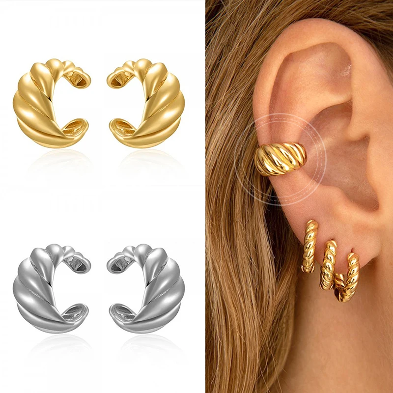1PC Punk Ear Cuff Plated 24K Gold/925 Silver Conch Clip Earrings For Women Climbers No Piercing Fake Cartilage Earrings