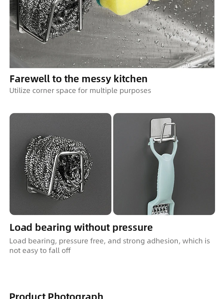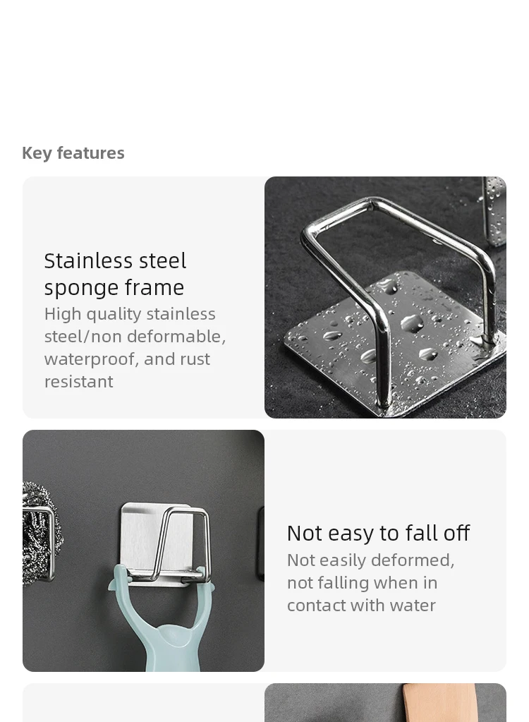• Stainless Steel Material :Made of durable stainless steel, this sink sponge holder is rust-resistant and easy to clean.
