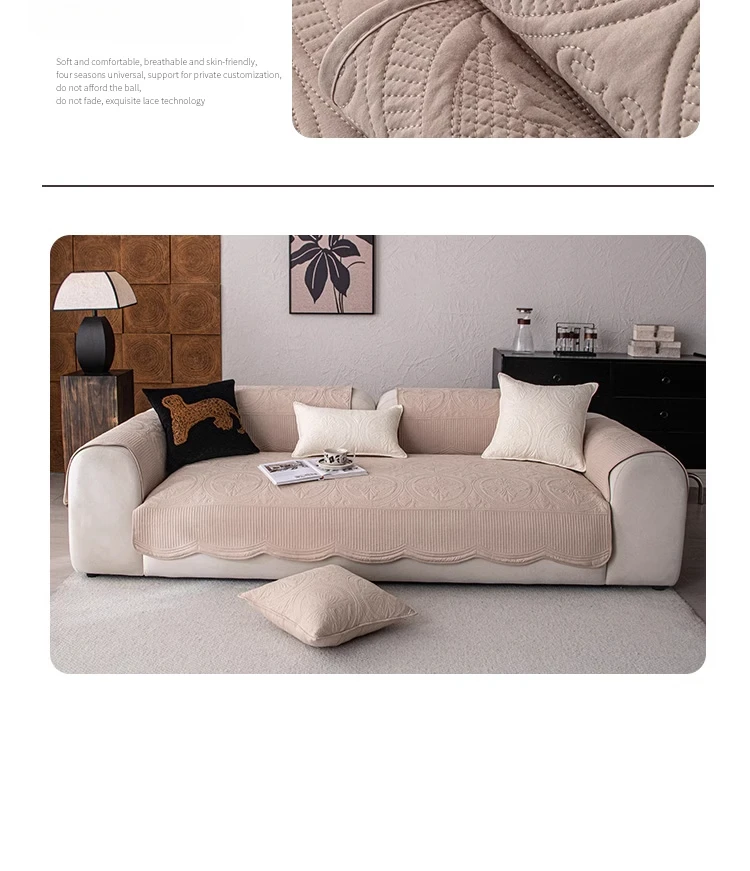 1pc Thicken Cotton Sofa Slipcover Non-slip Sofa Towel Quilted Embroidery Couch Cushion Pad for Living Room Modern Home Decor