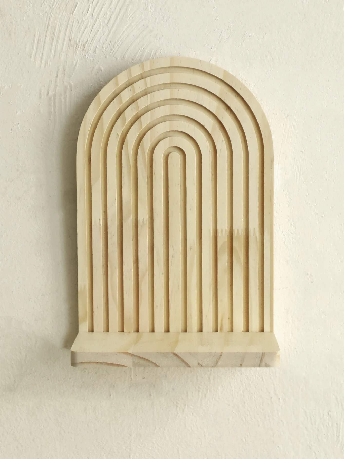 Infuse a touch of bohemian charm into your space with this rustic wooden arch wall shelf, perfect for adding a unique aesthetic to any room.