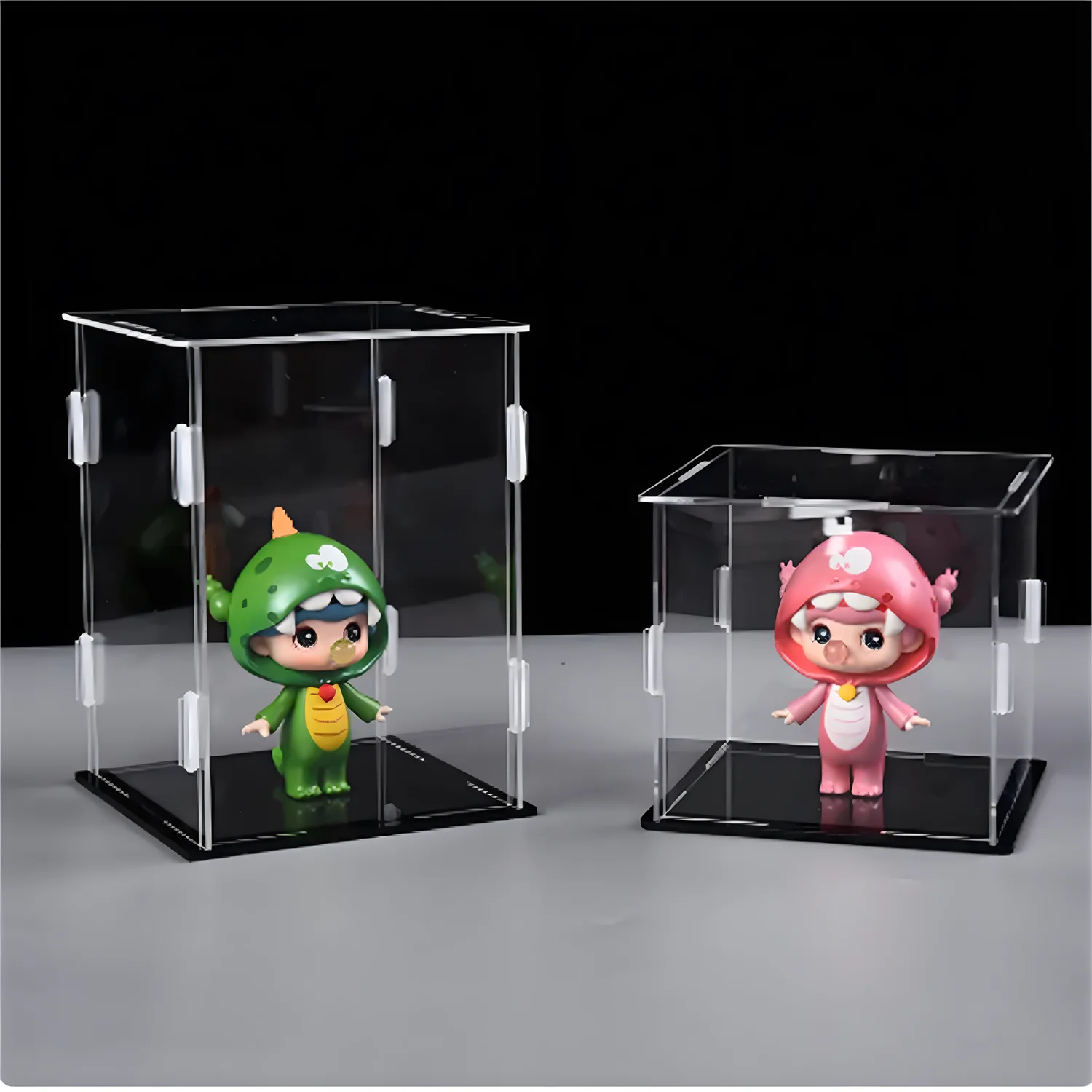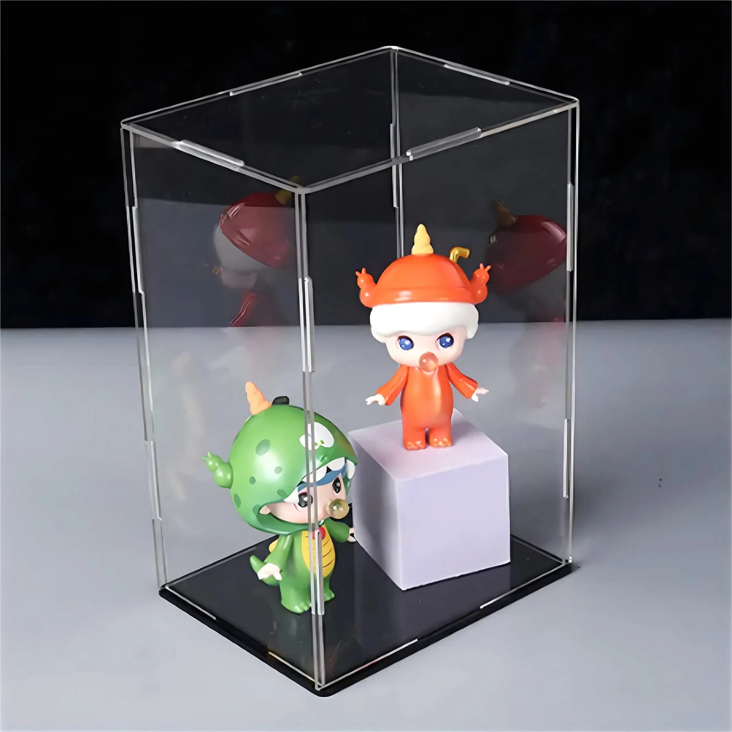 1pcs, black base acrylic display box, suitable for toy dolls, collectibles, and simple assembly dust-proof storage boxes