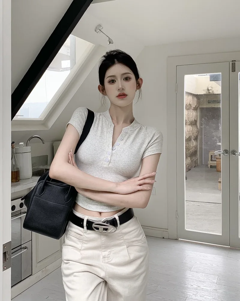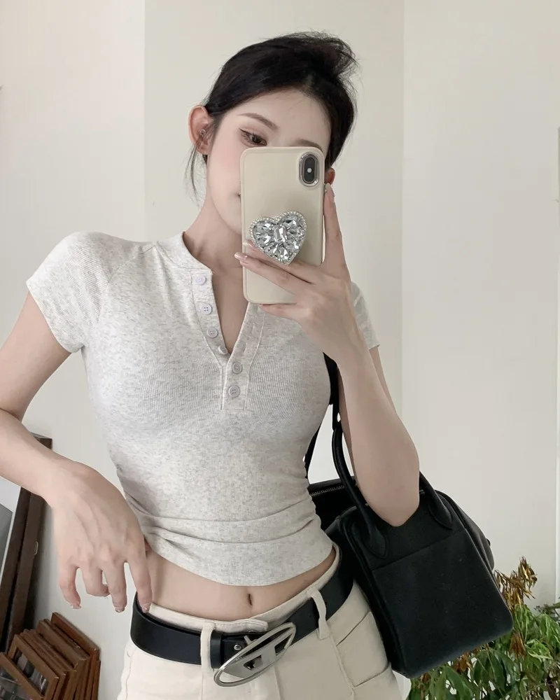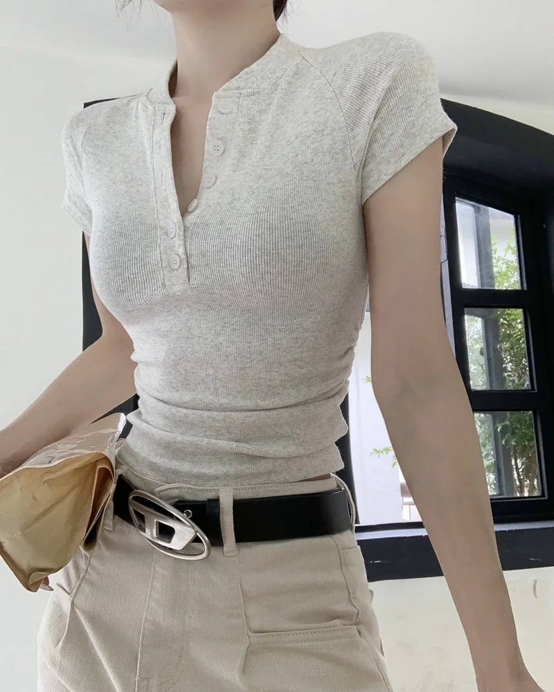 - Short Sleeve Slim Fit Top: Trend Casual Tee