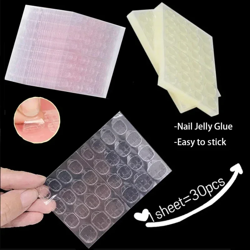1Sheet/30Pcs Pink/Yellow Double-Sided Nail Adhesive Jelly Glue Transparent Flexible False Nail Adhesive Tape for False Nail Art