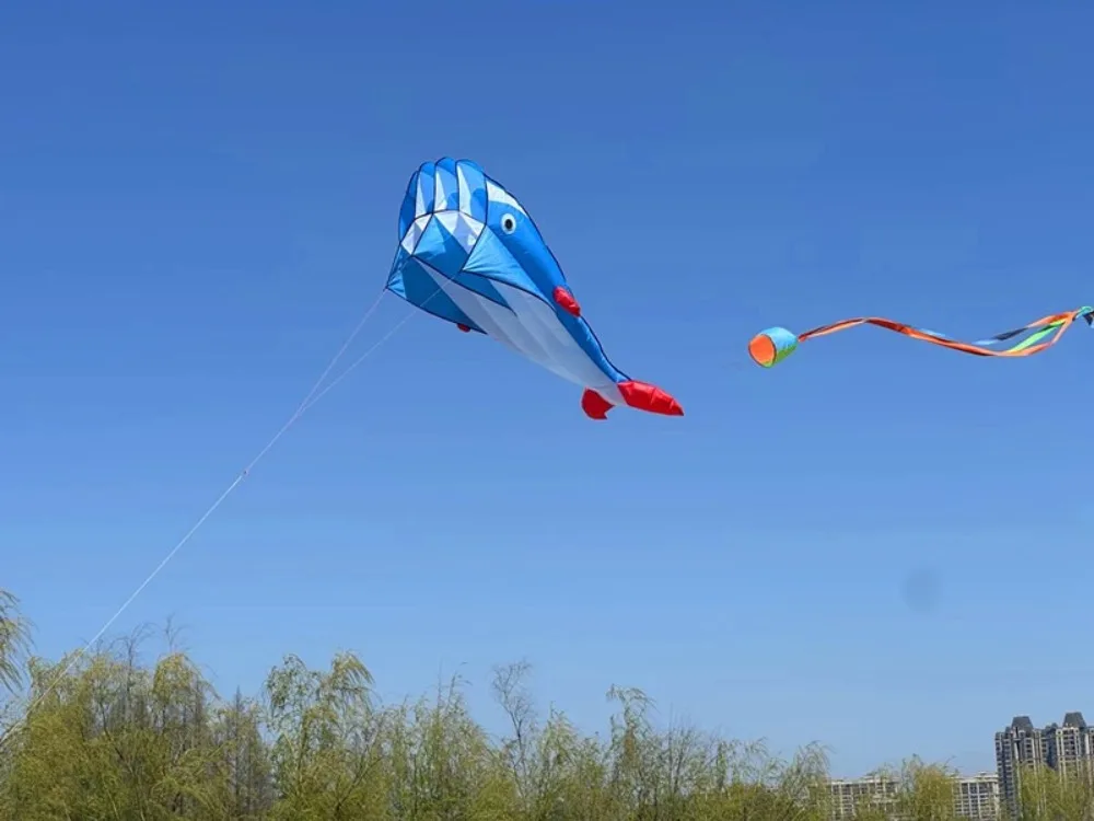 1. **Impressive Size and Design**: The New 2.2m Large Whale/Dolphin Kite features a striking and realistic design, available in either a whale or dolphin shape. Its large 2.2-meter size makes it an eye-catching spectacle in the sky, captivating both children and adults alike.