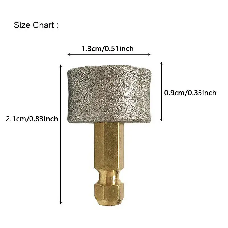Size:Diameter:1.3cm,Total Length:2.1cm,Drill Bit Length:0.9cm