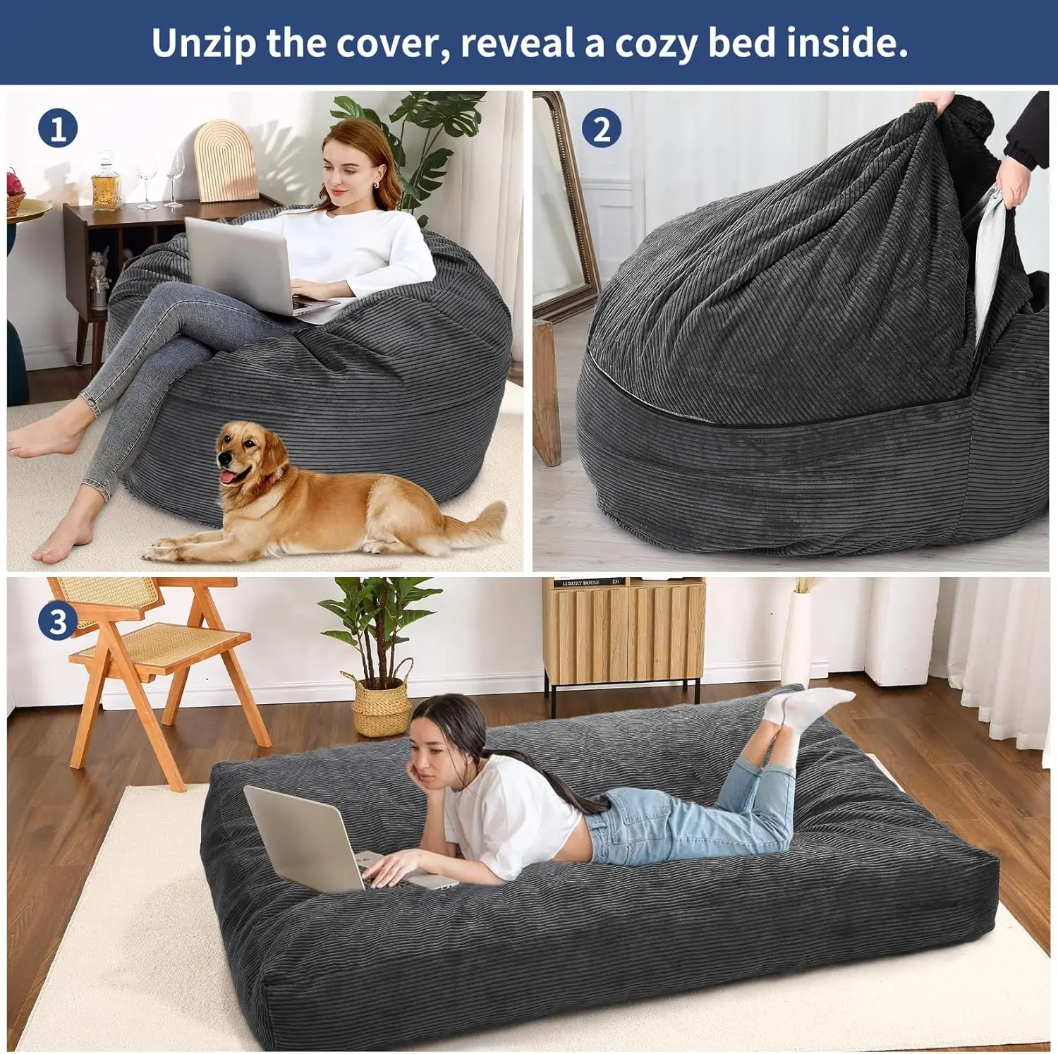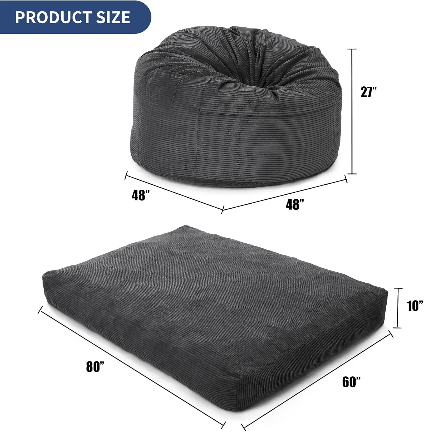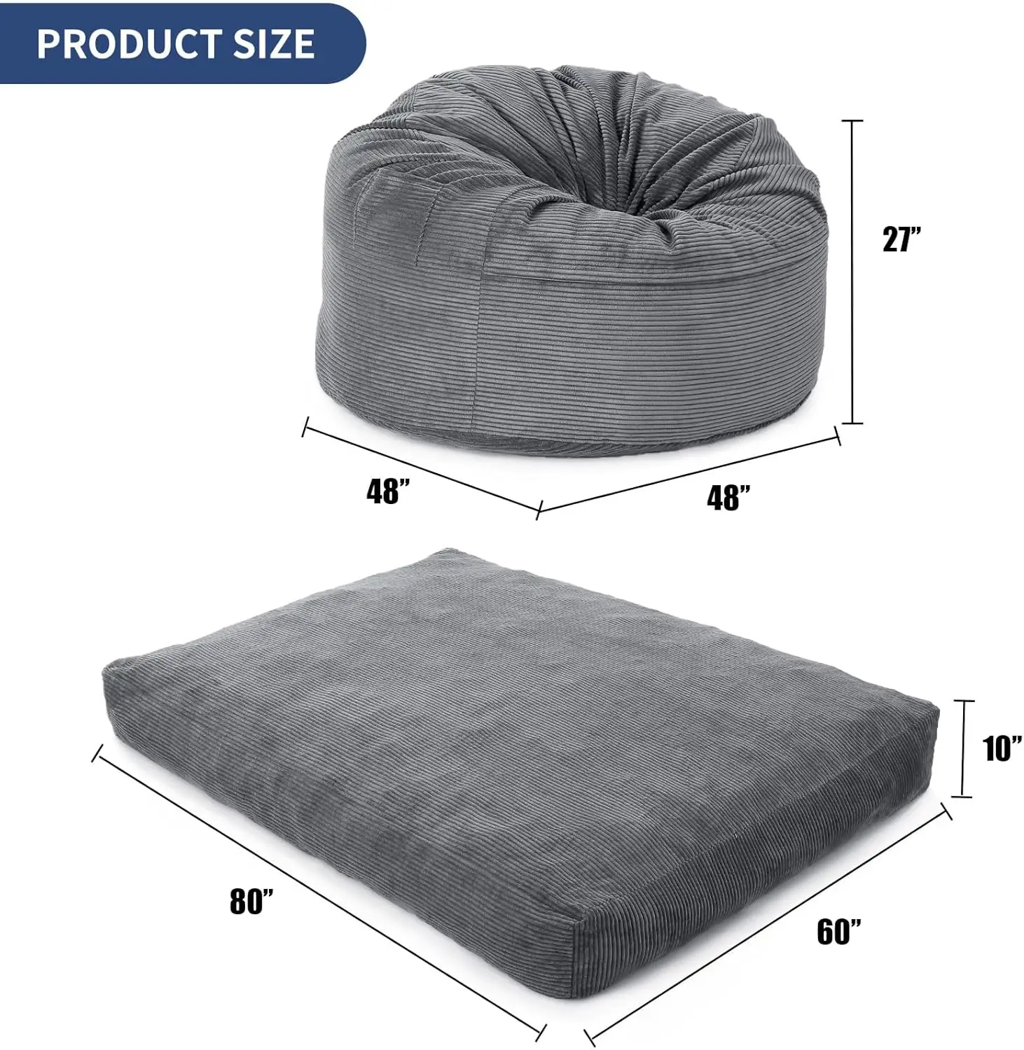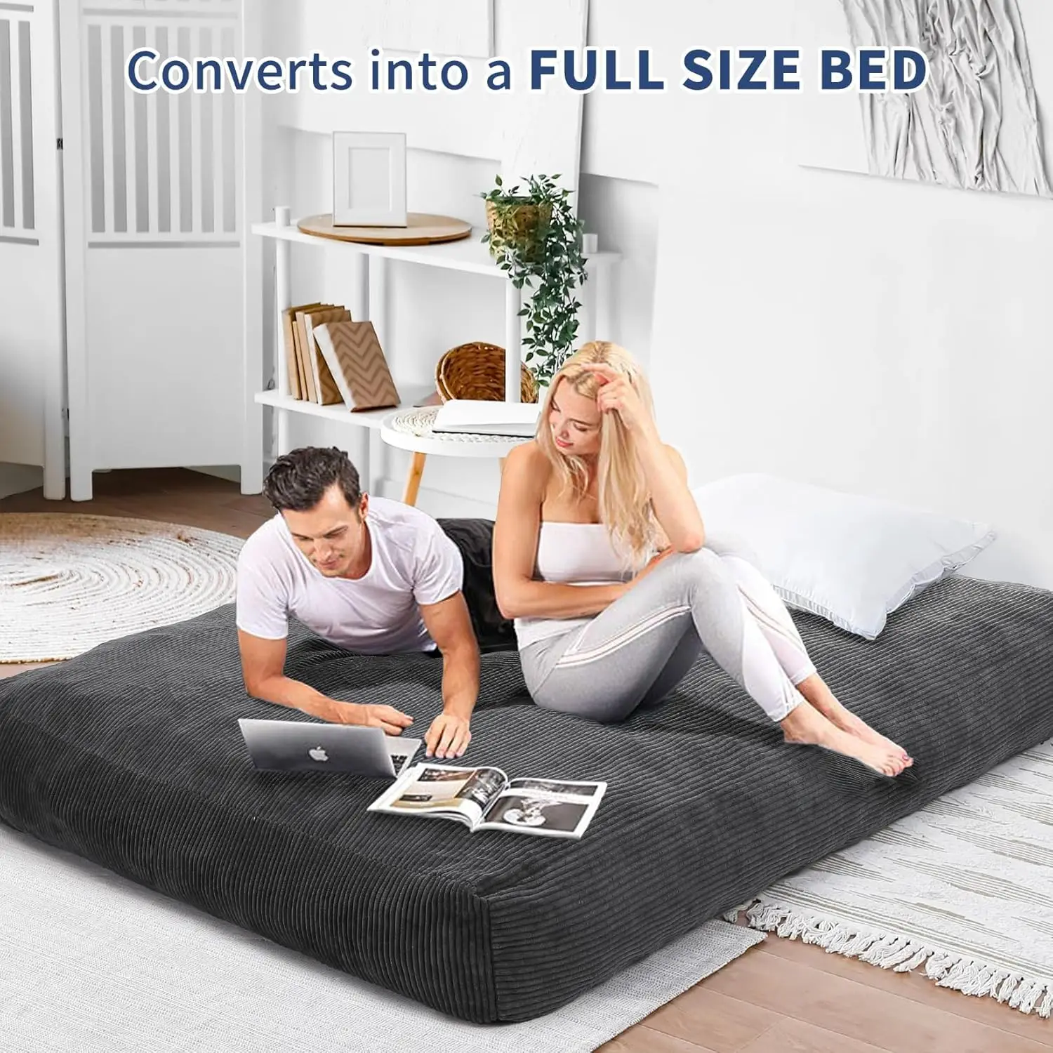 2-in-1 Design: Easily transforms from a spacious bean bag chair to a full-size floor mattress for Superior versatility in any room.