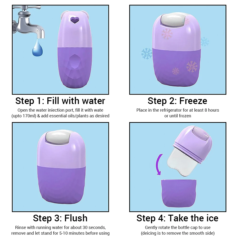 – After cleansing your face, run your Ice Roller Cube under water to defrost slightly a few minutes and then put it out