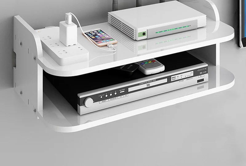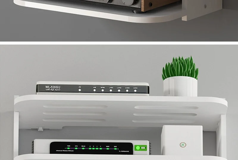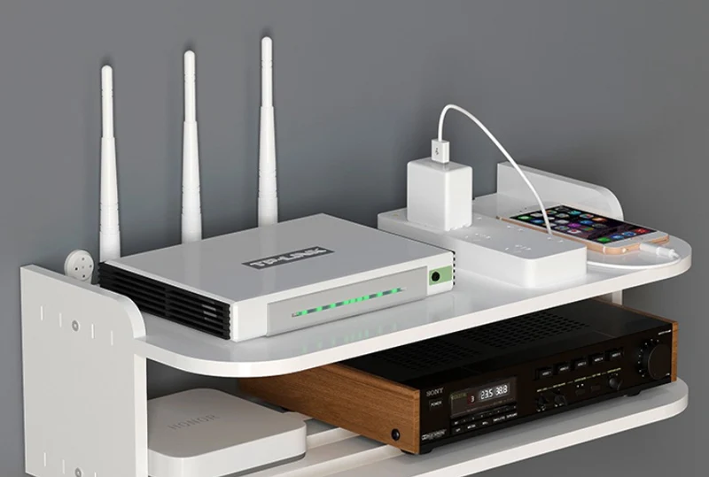 📌 This dual-layer wall shelf hides routers, cables, and power strips while ensuring optimal airflow. Perfect for renters, gamers, or minimalist homes craving a clean media setup