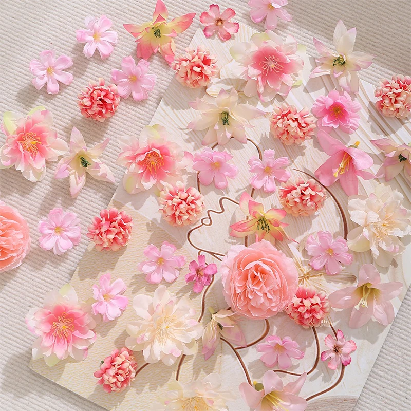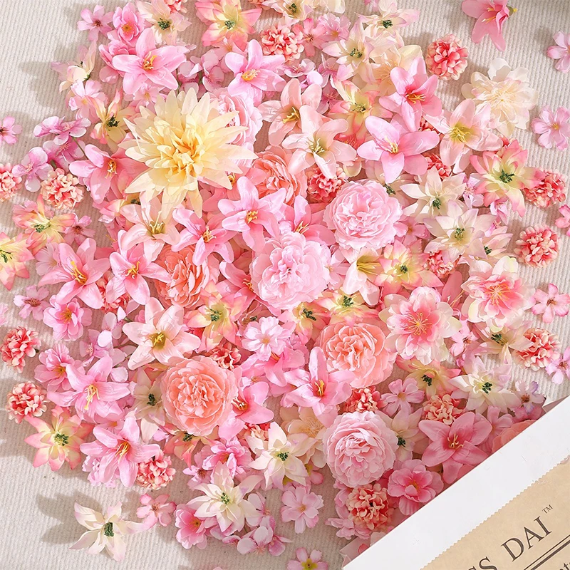 20/50Pcs Artificial Flower Head Mini Silk Artificial Rose Peony Daisy Flower Craft Supplies Wedding Party Wreath Home Decoration