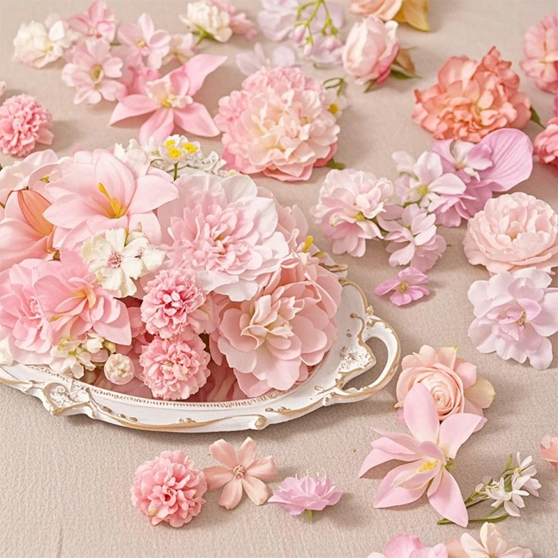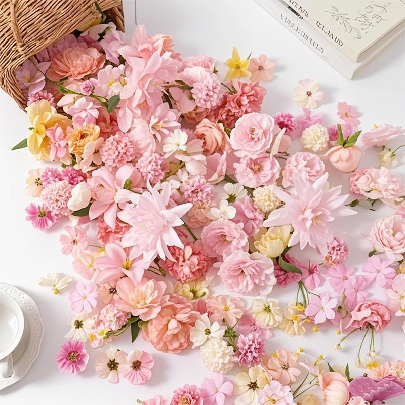 20/50Pcs Pink Artificial Flower Head Mini Silk Artificial Rose Daisy Flower Craft Supplies Wedding Party Wreath Home Decoration