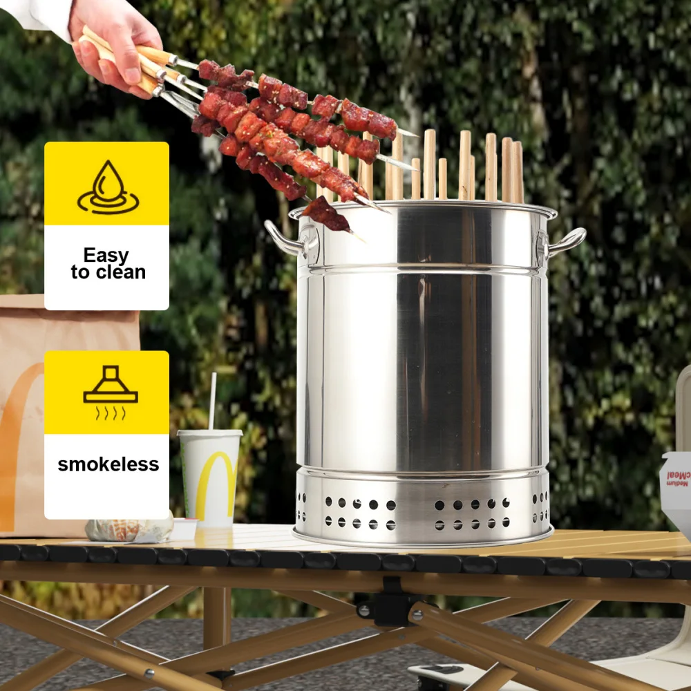 【Portable】The grill barrel is designed for portability, making it convenient to take on camping trips, picnics, or to use in your backyard.Roast 20 skewers of food at a time, perfect for family barbecues and friends gathering!
