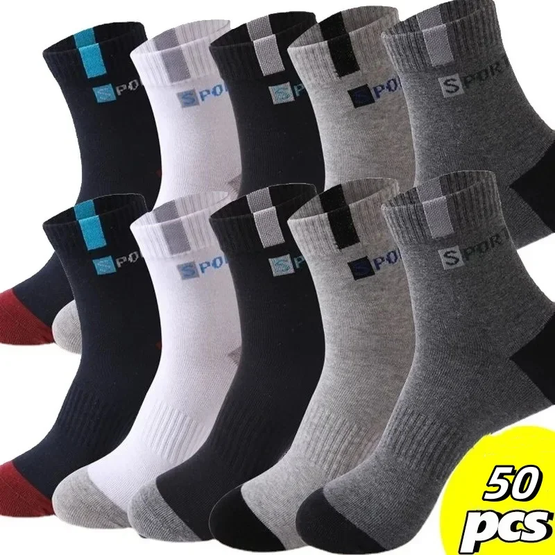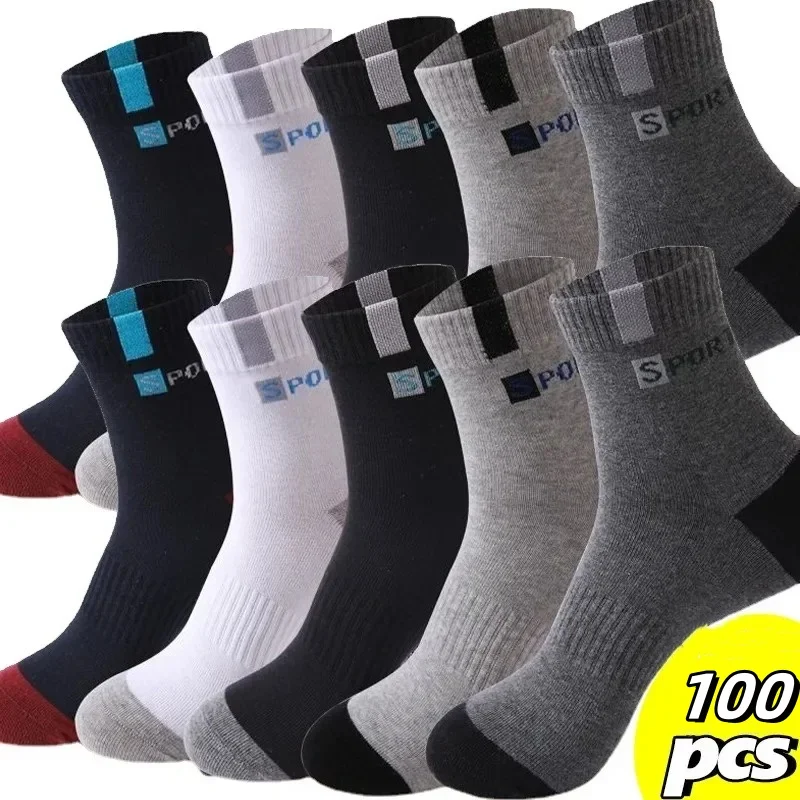 200/100/50/20/10/5 Pairs Cotton Sock for Men Sport Breathable Soft Letter Fashion Sneakers High Elastic Middle Tube Stocking Tow