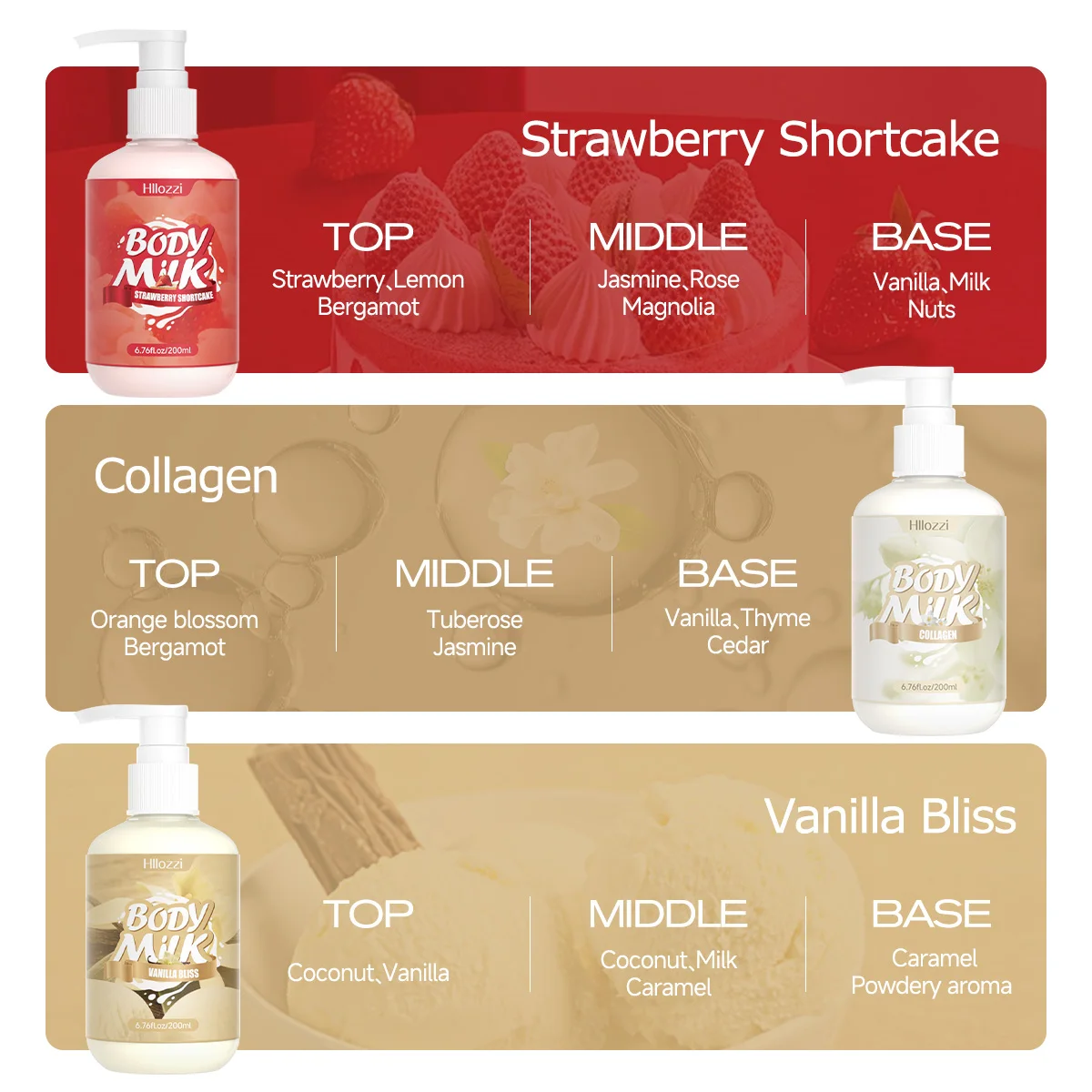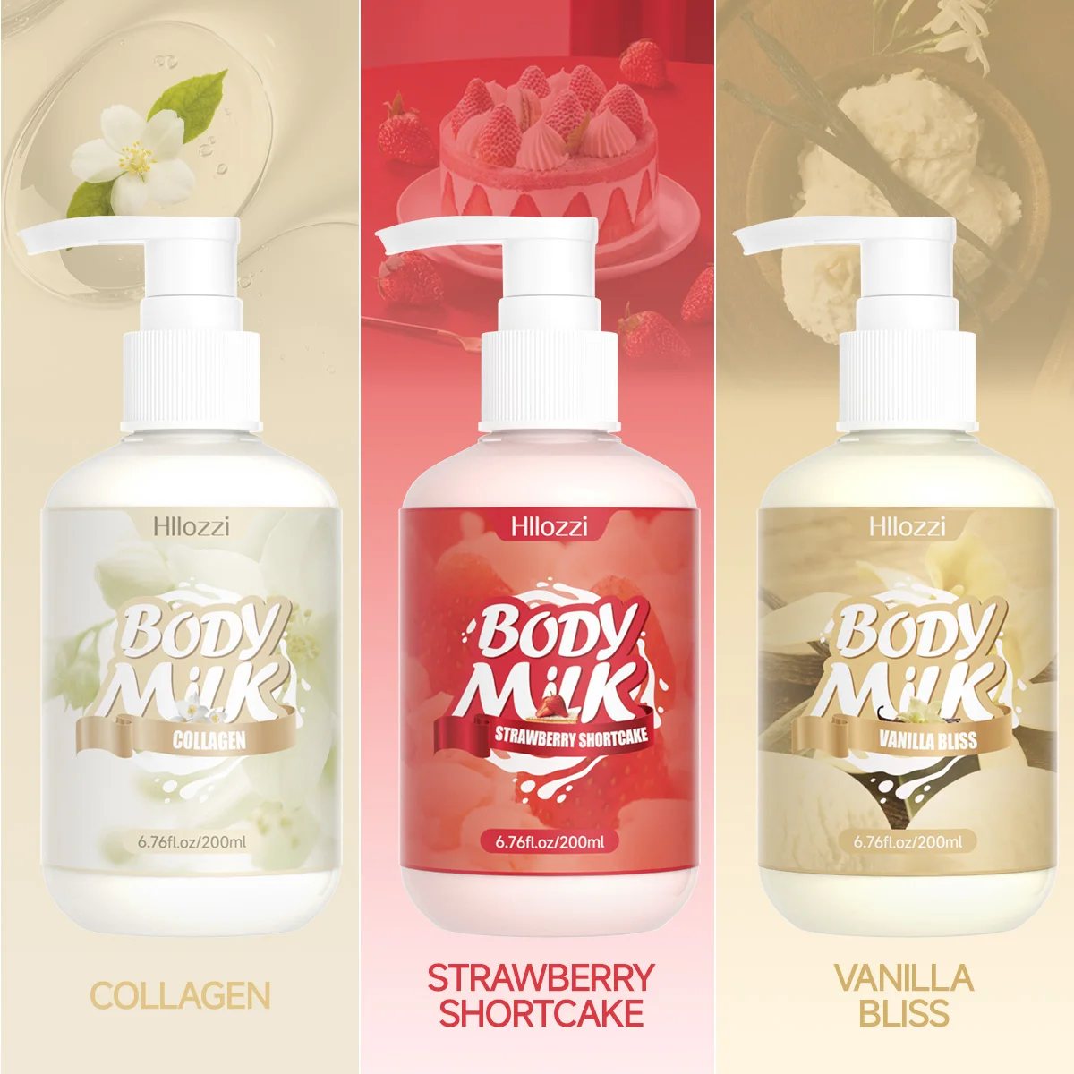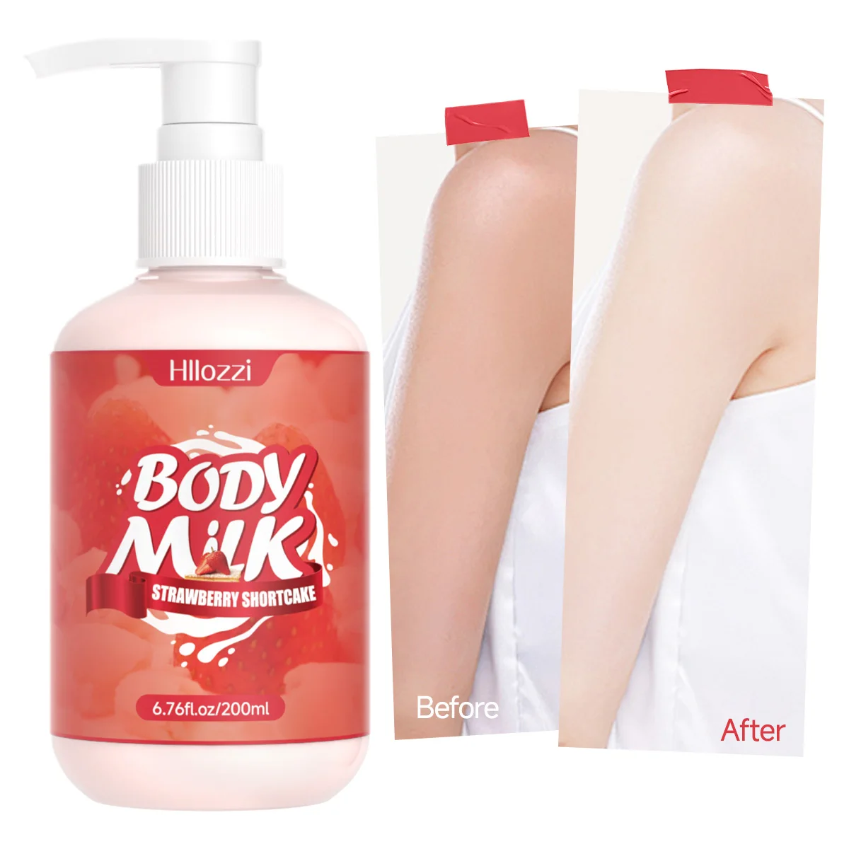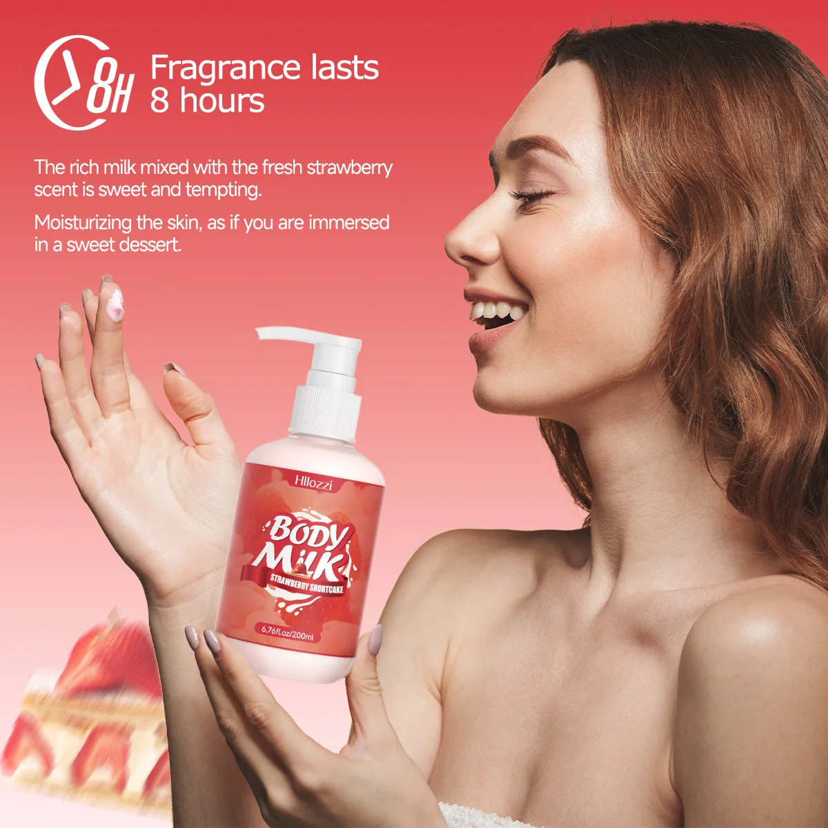 200ml/6.76fl.oz Strawberry Cake Body Lotion, Vanilla, Sakura, Rose, VC Citrus, Collagen, Hydrating and Moisturizing Skin Care