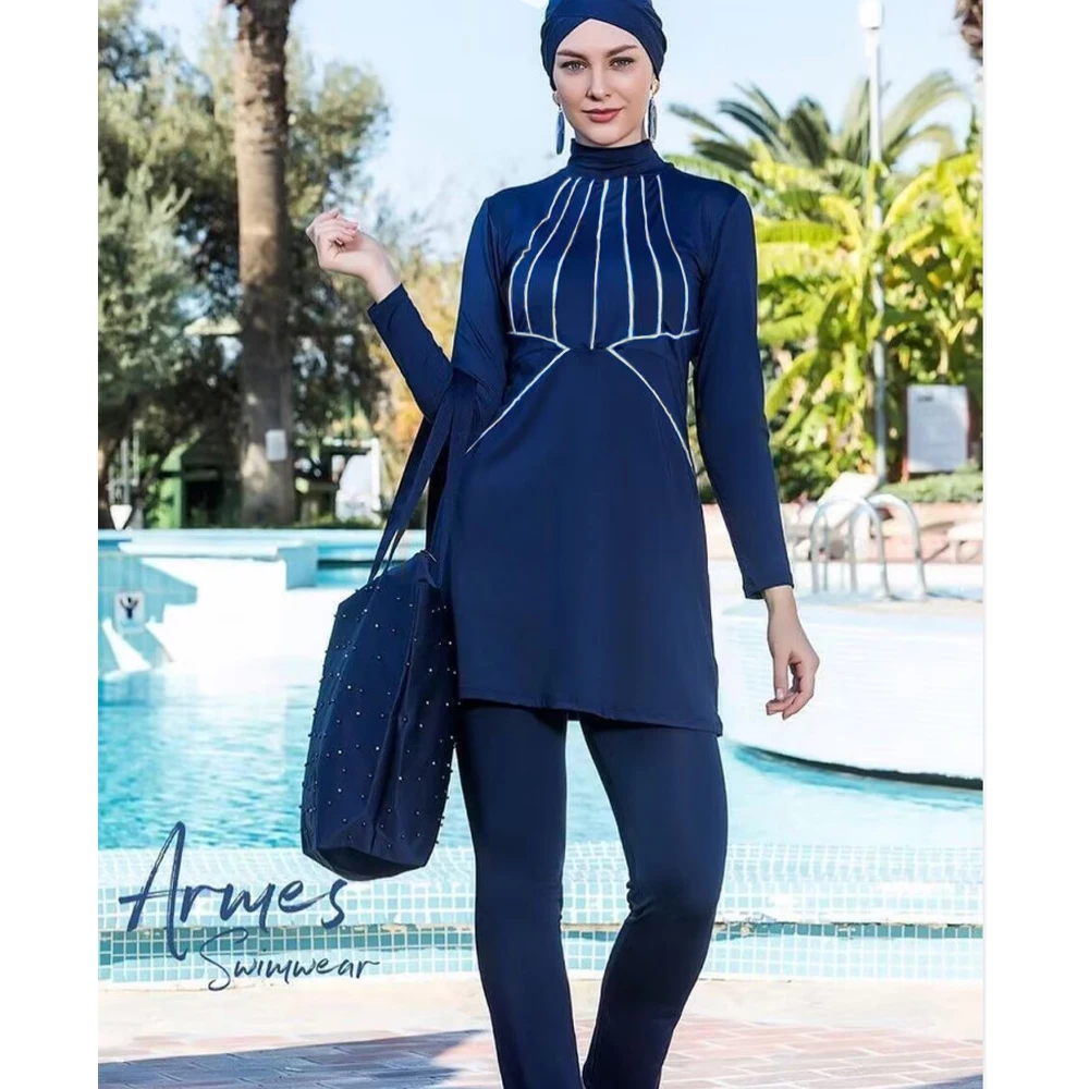 2023 Muslim Swimwear Women Islam Modest Swimsuit Bikini Beachwear With Hijab Burkinis Femmes Swiming Suit Long Sleeve Plus Size