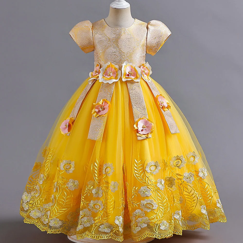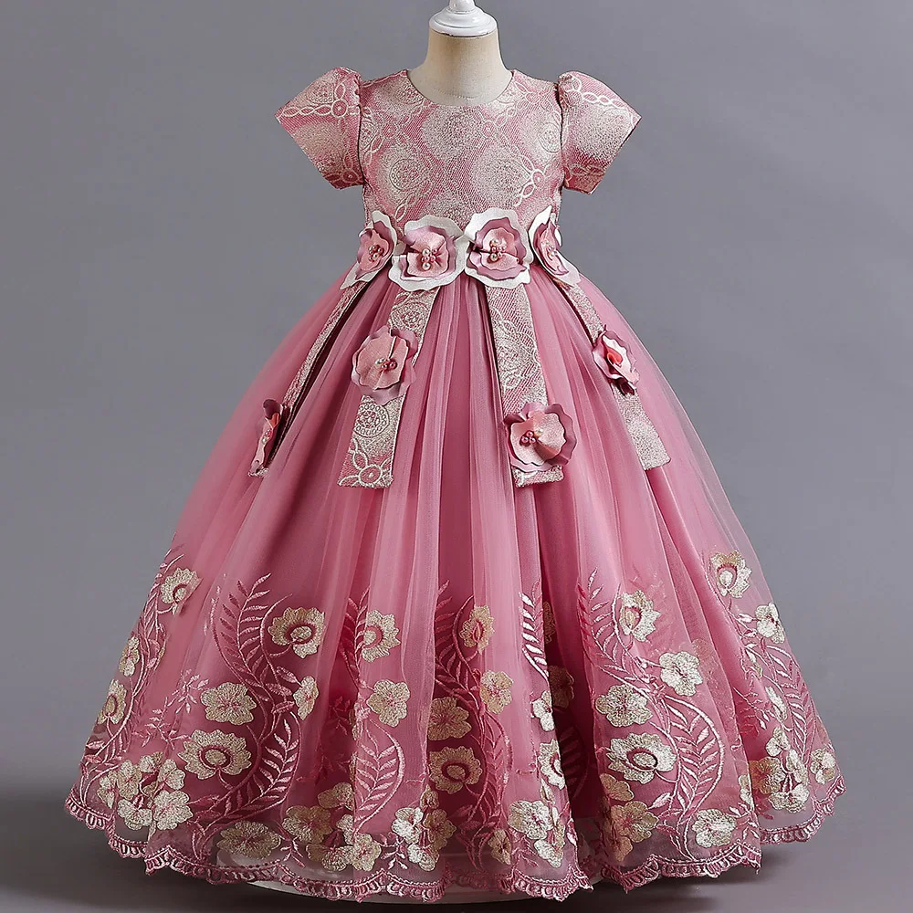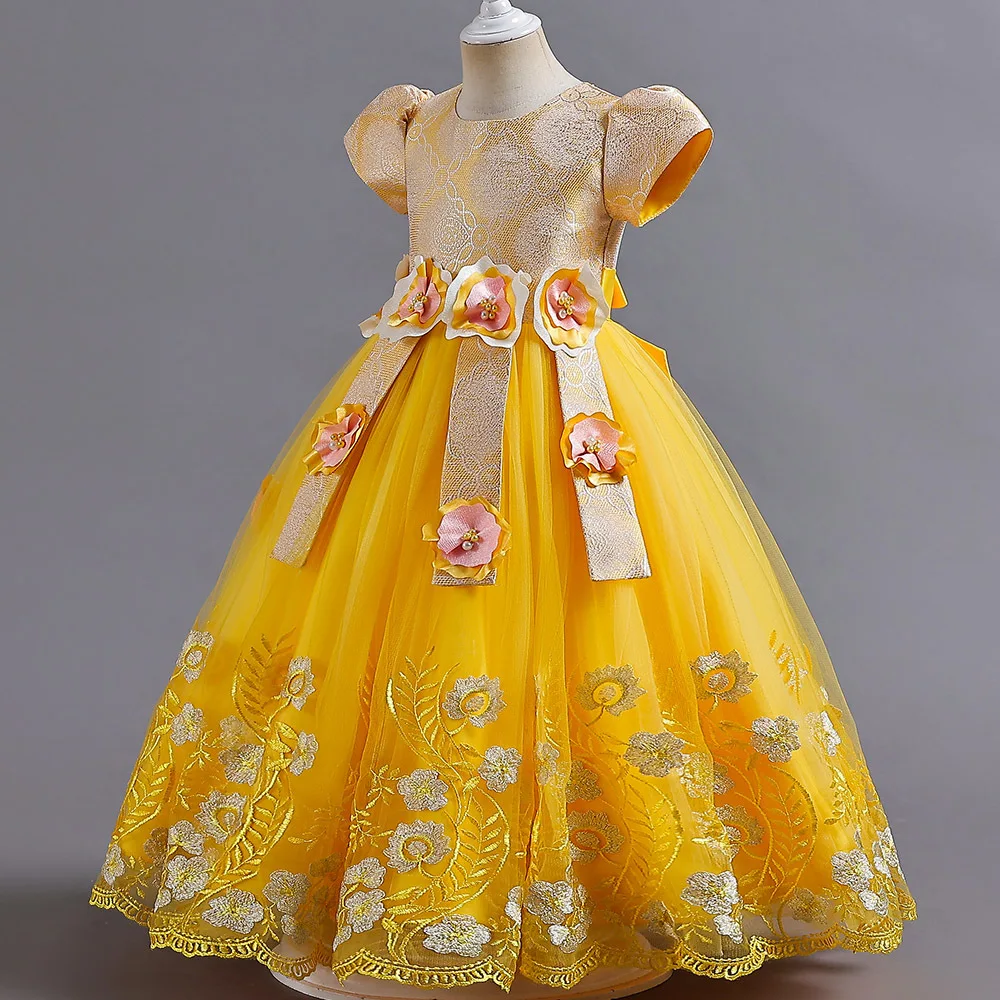 2023 New Year Teenager Girls Elegant Long Dresses Flowers Girls Princess Dress Carnival Easter Ceremony Party Sequins Ball Gown